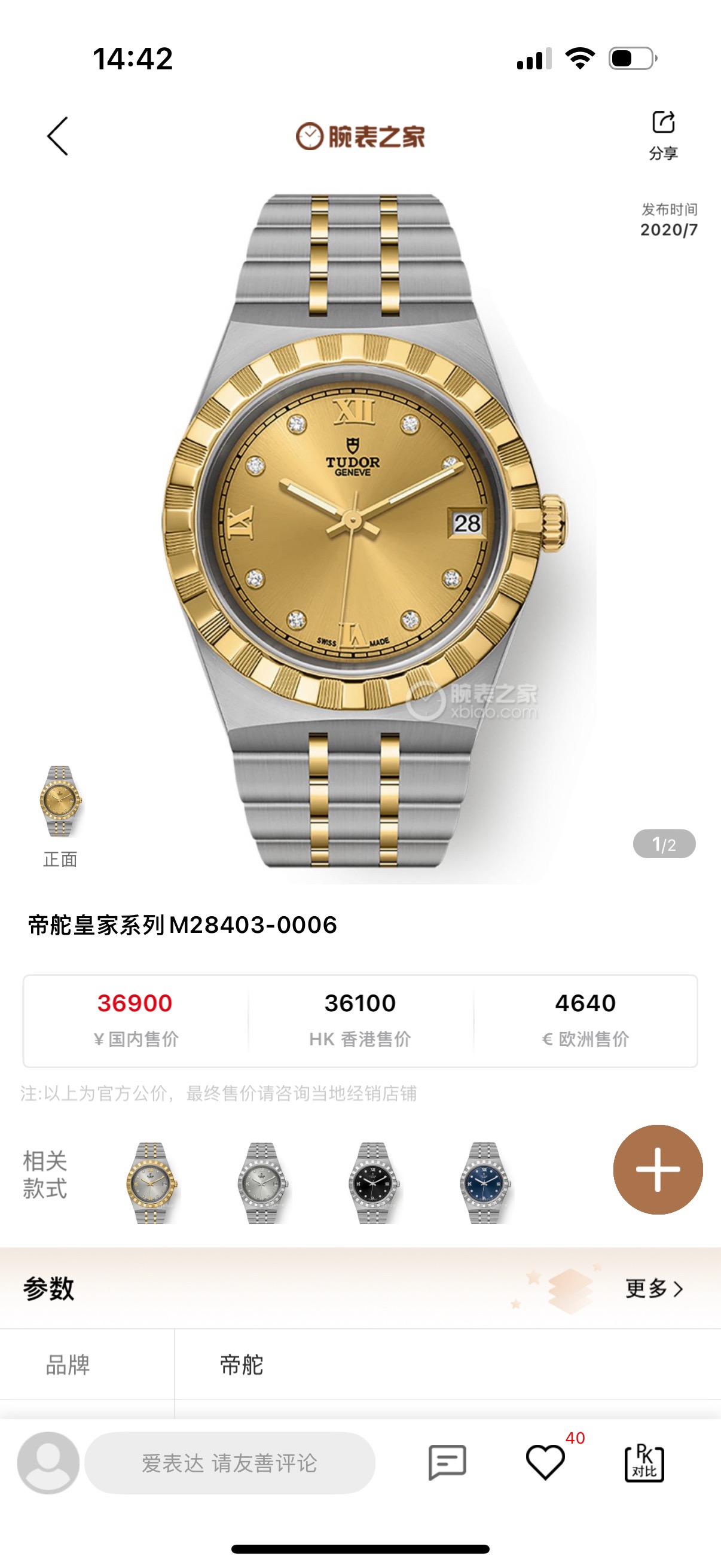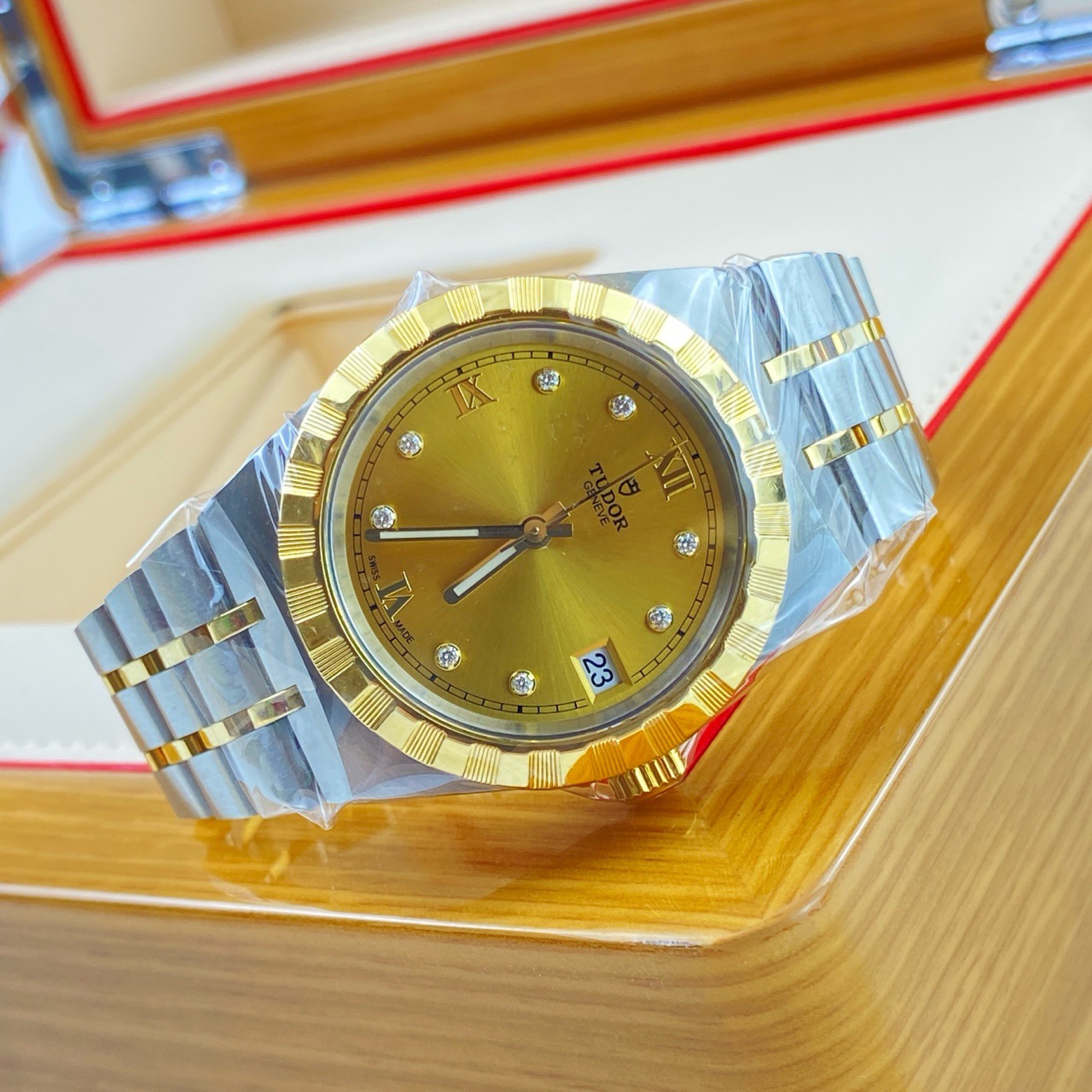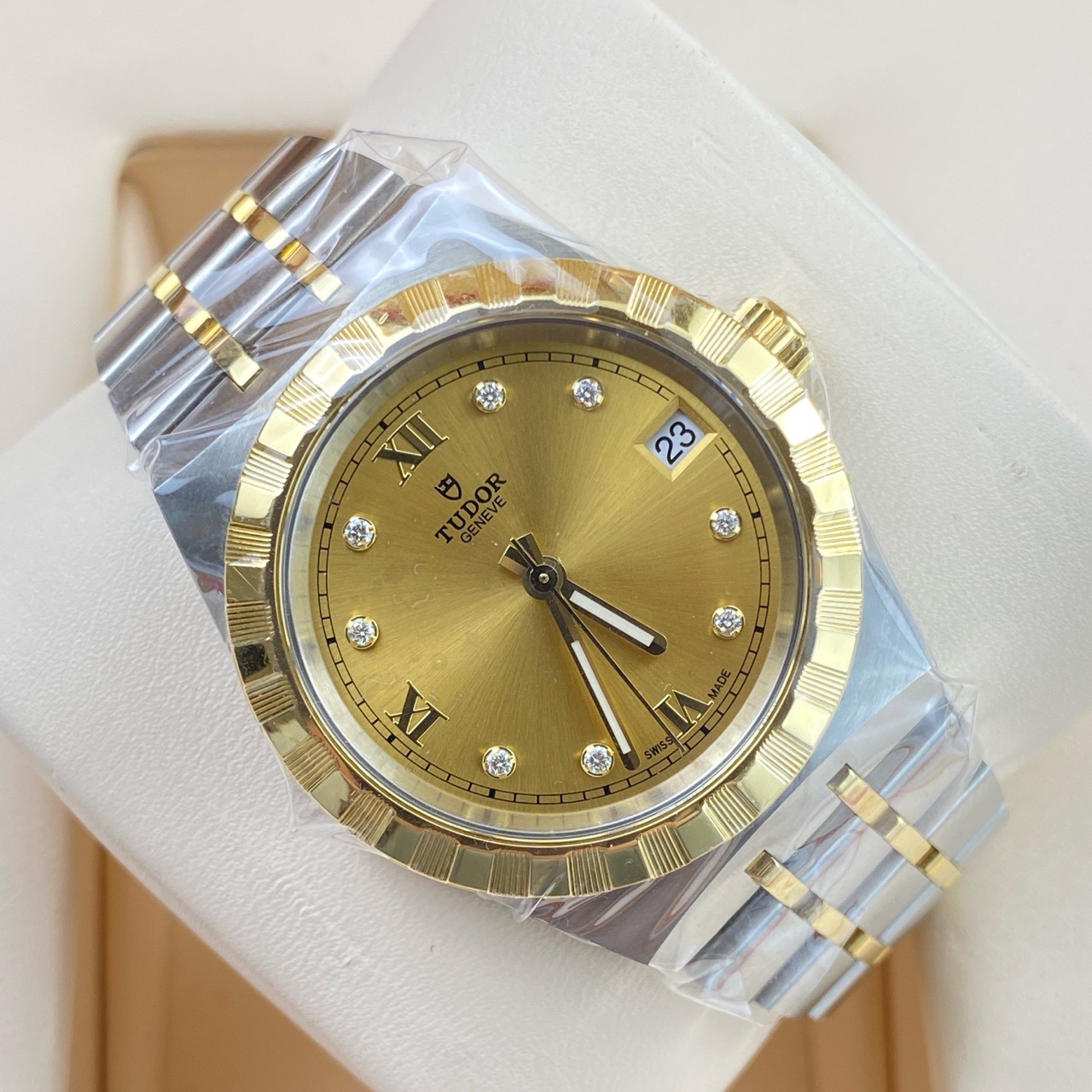 帝舵皇家系列女士自动机械腕表 28403-0006型号 34毫米表径 金色表盘 钻石刻度 日期显示 精钢间18K黄金表壳 极品成色 2023年购入 附件齐全 专柜36900