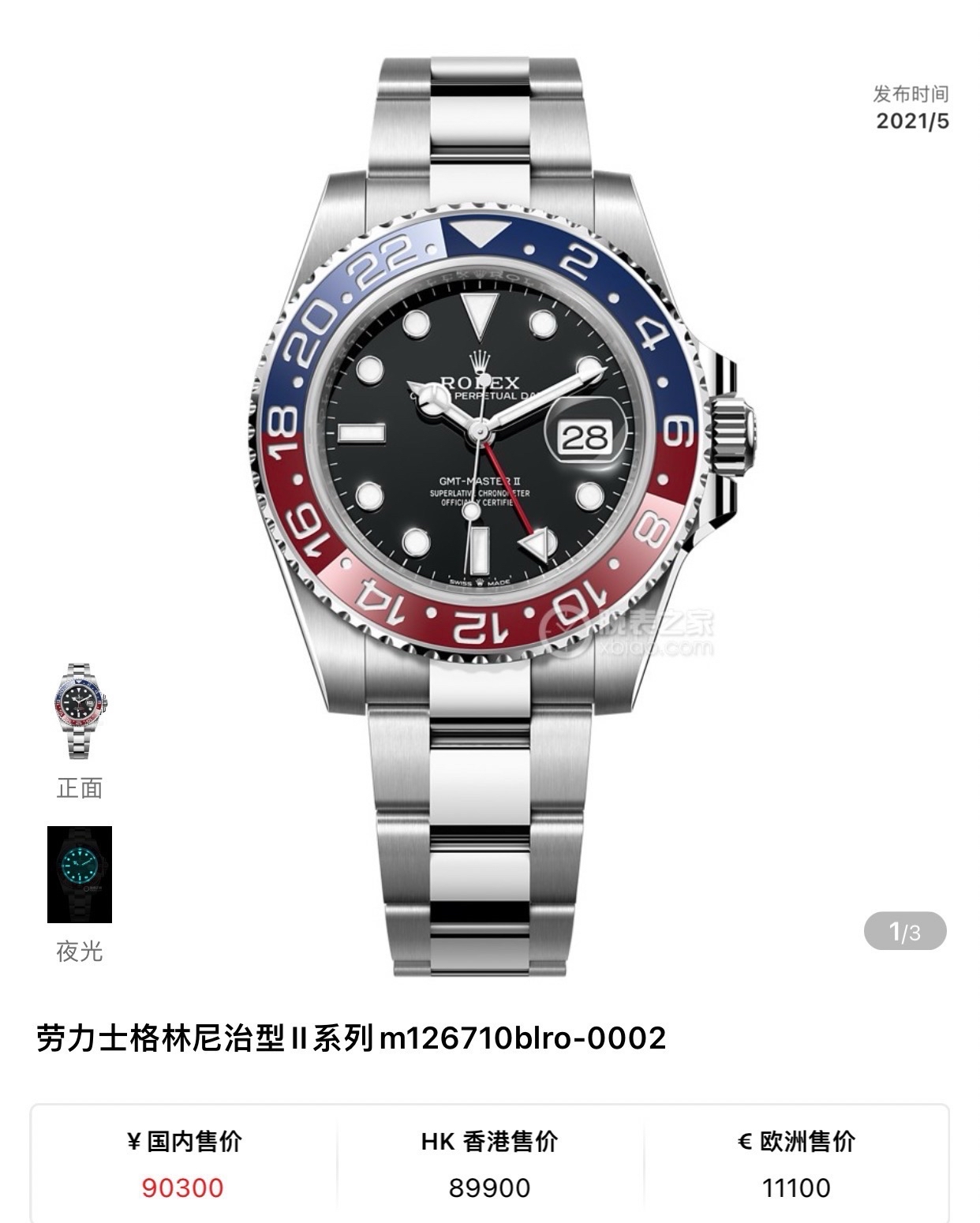 劳力士格林尼治型II 板带可乐圈 M126710BLRO-0002机械男性