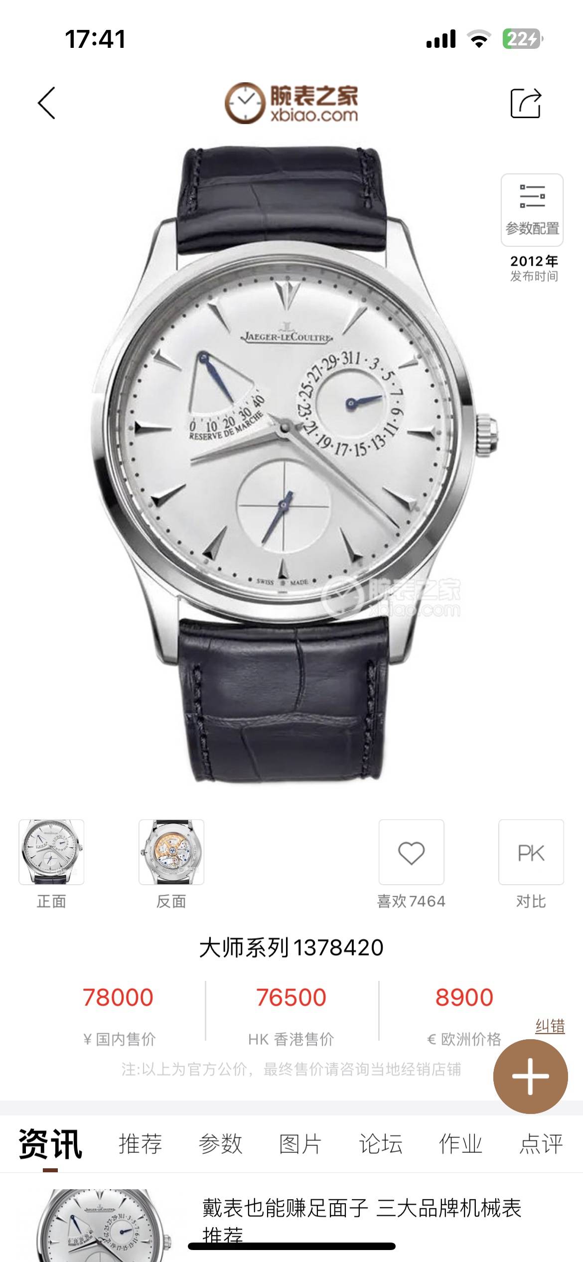 积家Master大师Q1378420机械男性