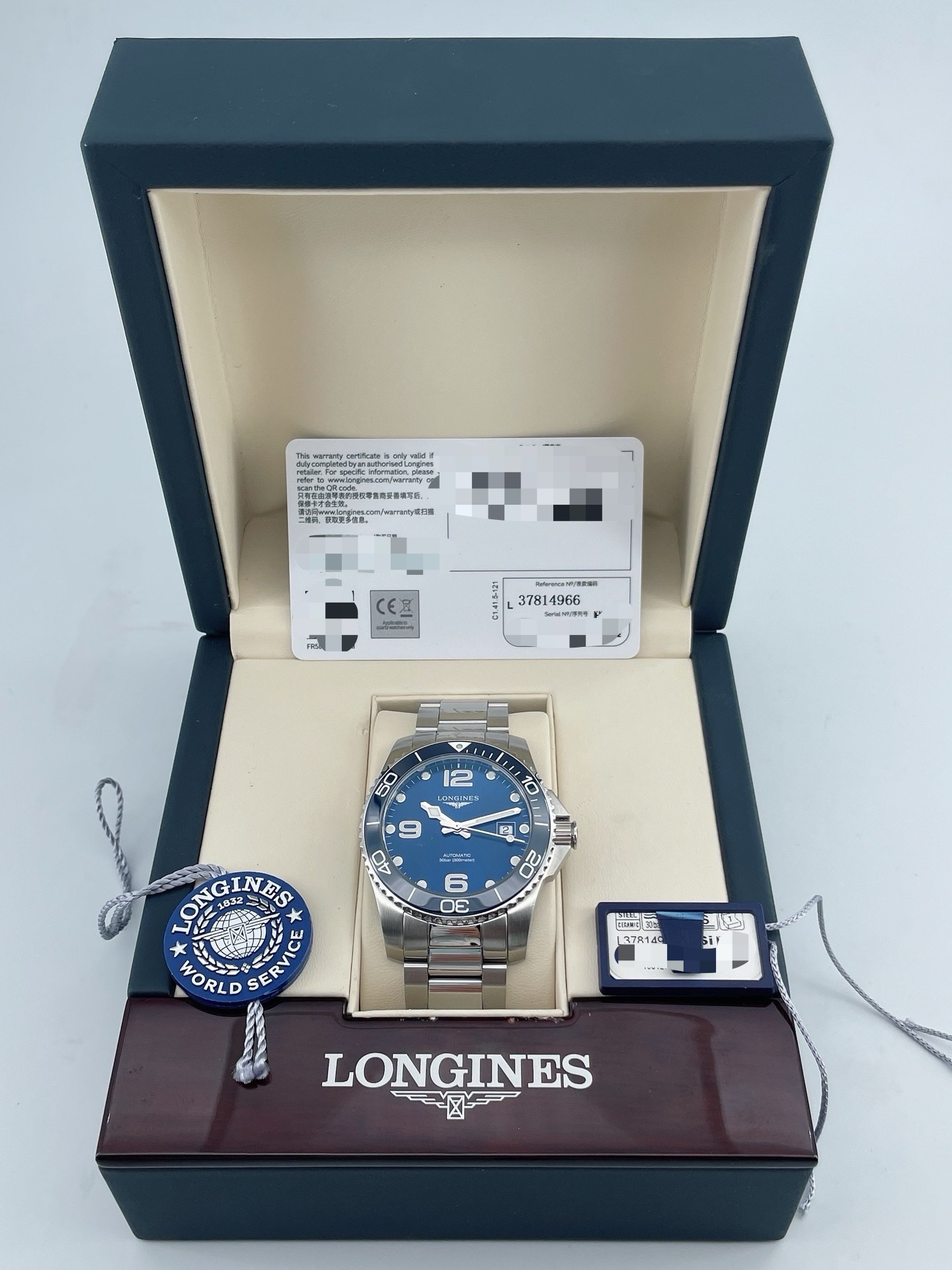 浪琴 康卡斯潜水系列 L3.781.4.96.6 自动上链机械机芯 精钢及陶瓷 41mm表径 22年全套 专柜价14600 现好价