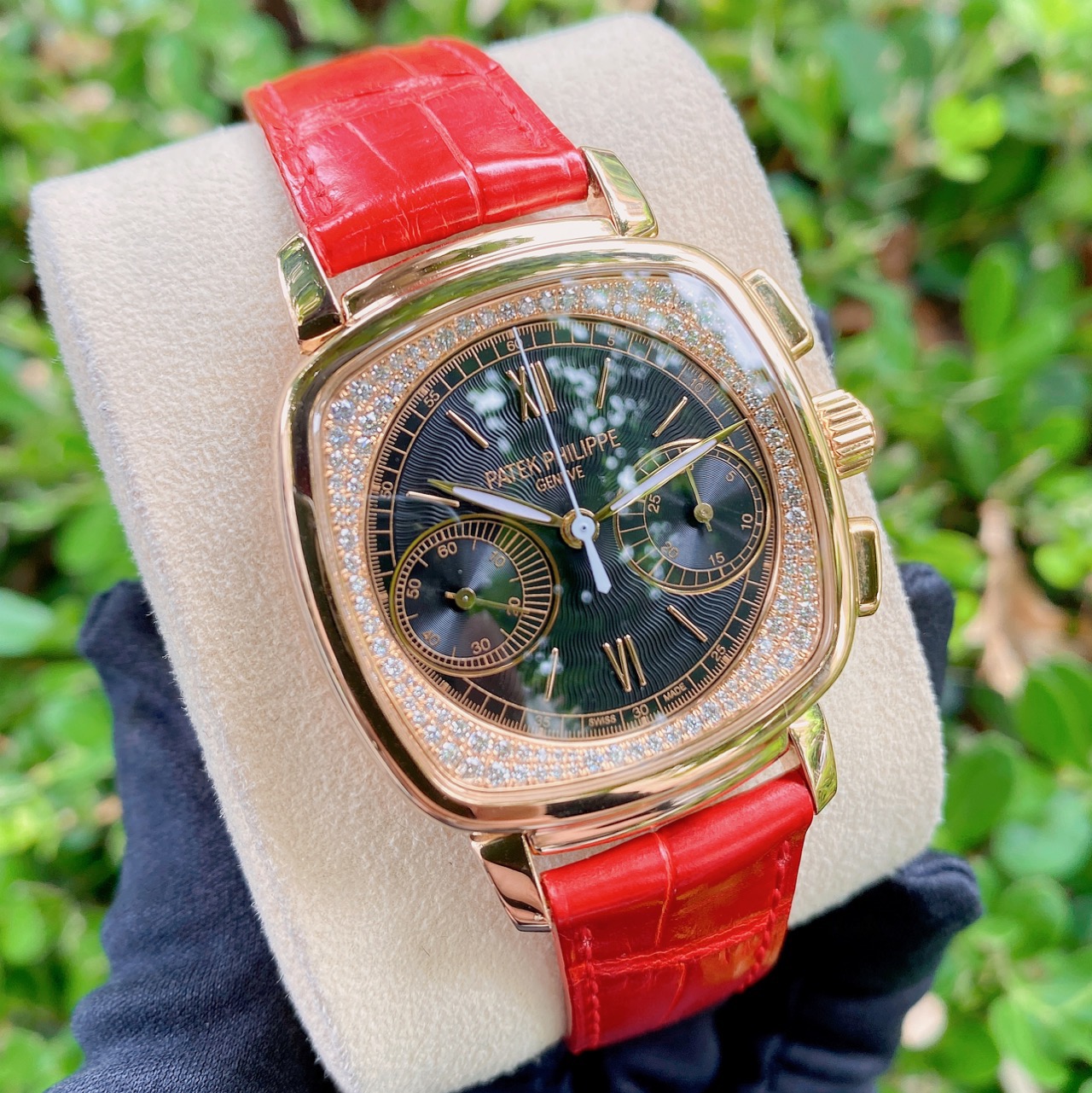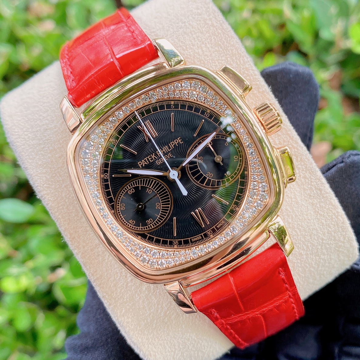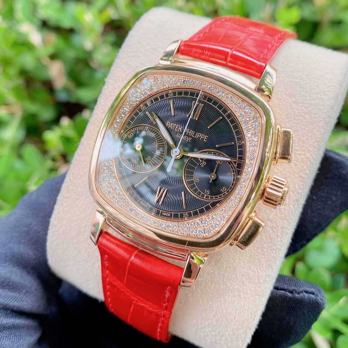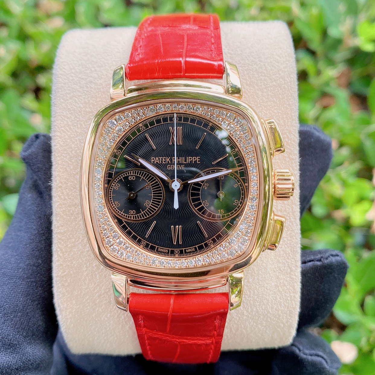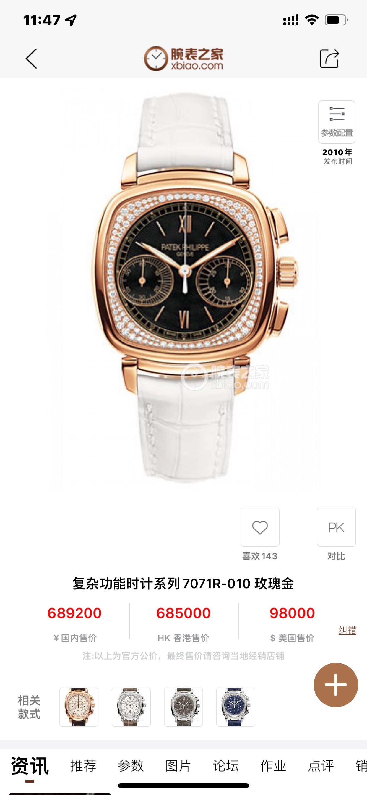 百达翡丽7071R-010 35mm 百达翡丽印记 18k玫瑰金,表盘外缘镶嵌136颗钻石,总重0.58克拉 总重88.5克 公价689200