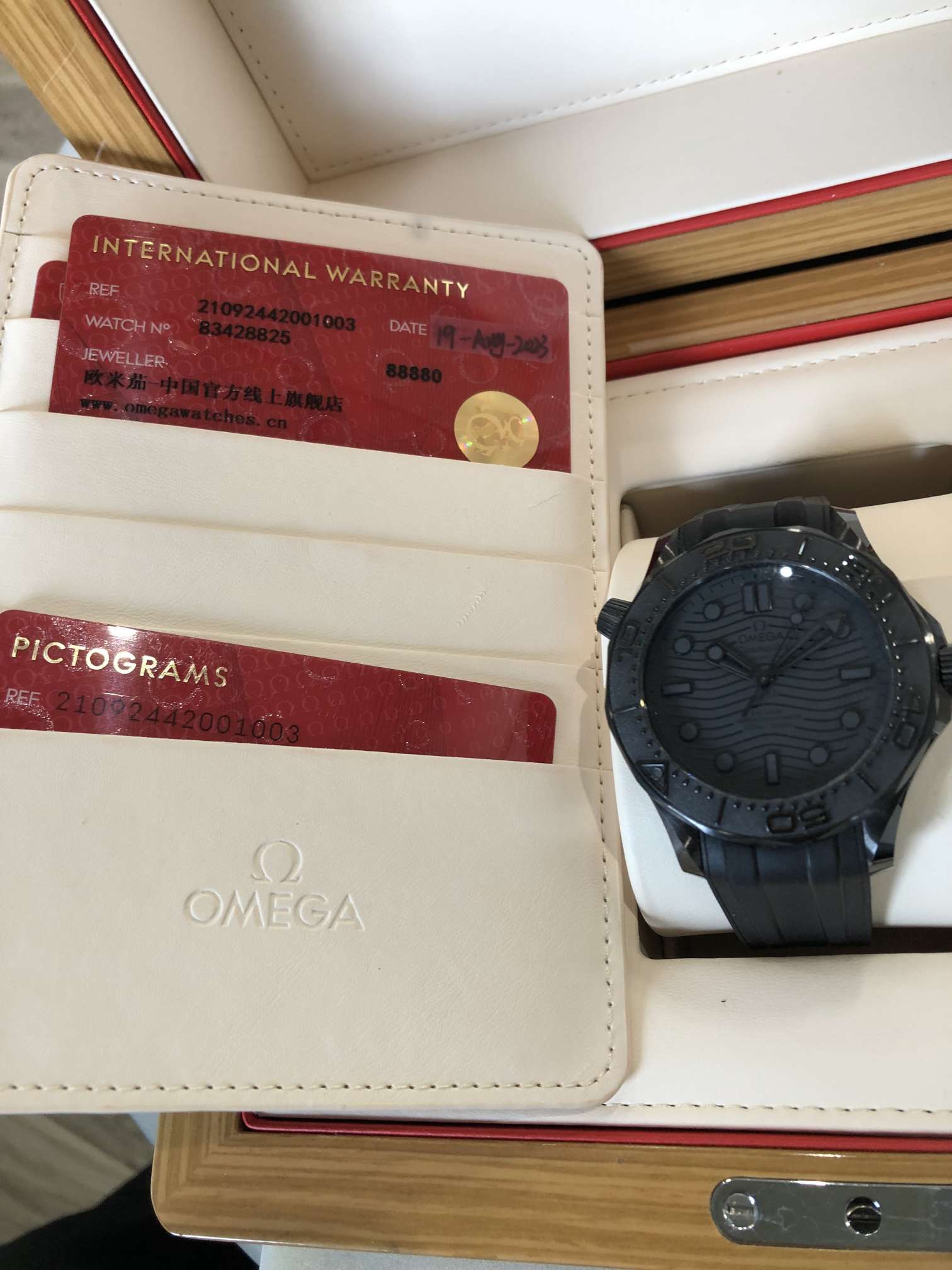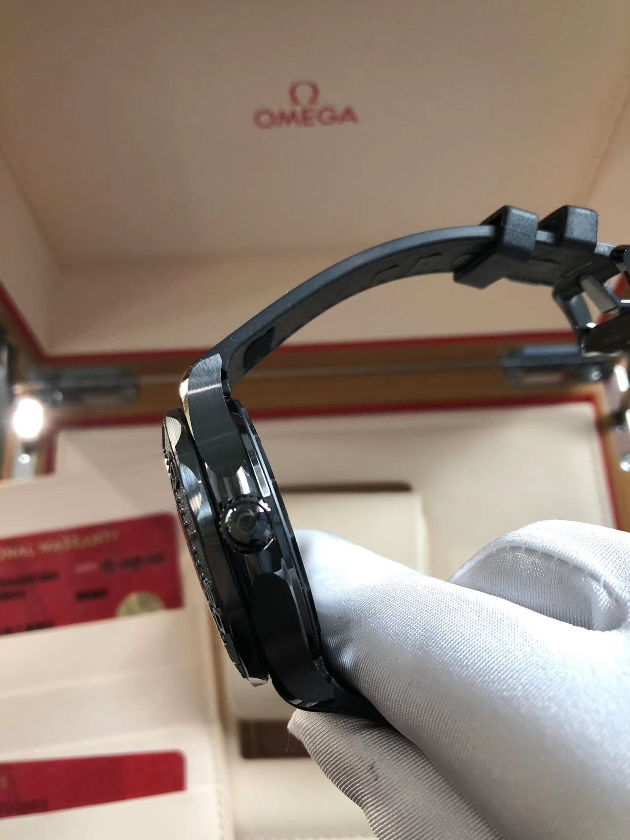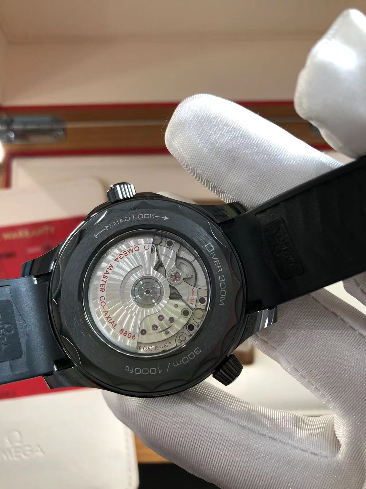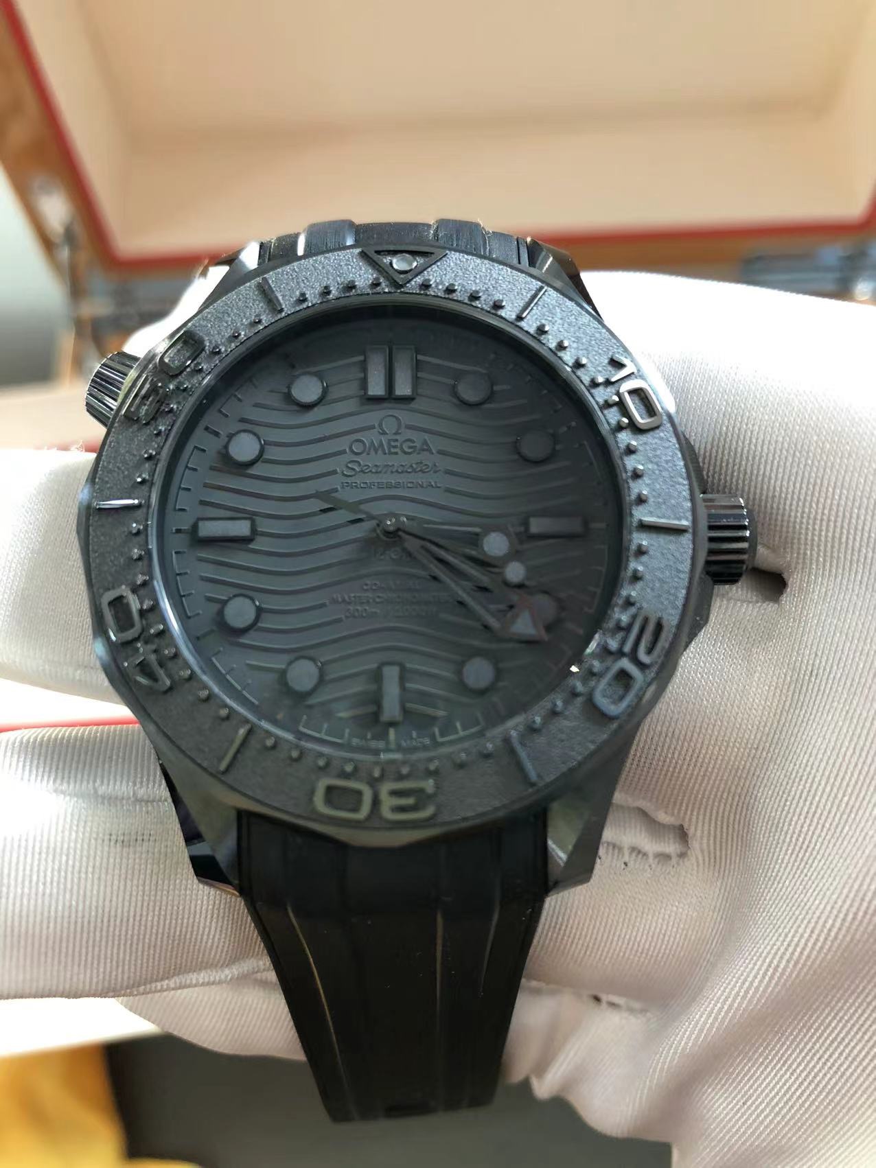 欧米茄,海马300黑武士,43.5大表径,8806机芯自动机械透底,全表黑色陶瓷打造,耐磨耐划,颜值超帅,专柜售价76700,2023年全套附件,完美品相