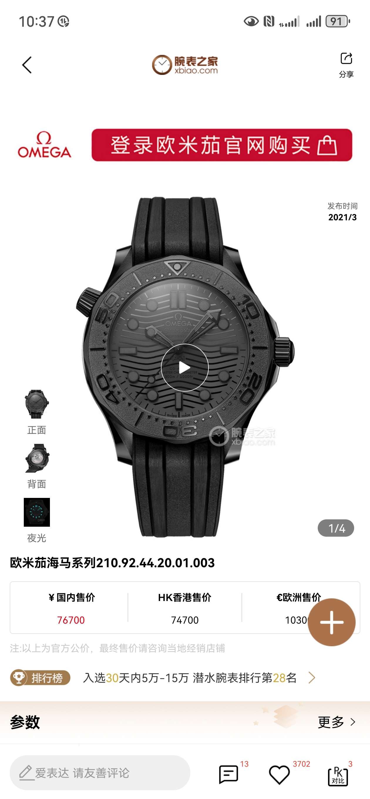 欧米茄海马210.92.44.20.01.003机械男性