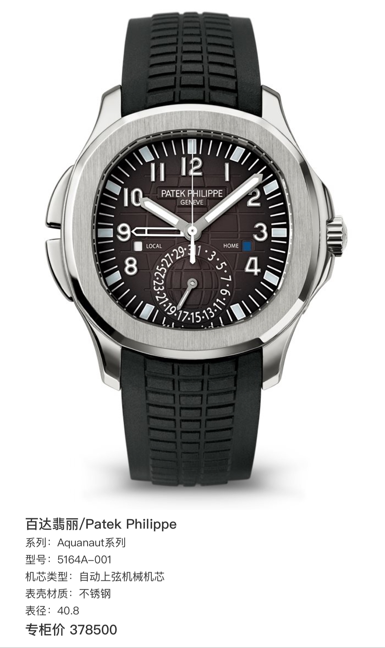 百达翡丽/Patek Philippe Aquanaut系列 5164A-001 自动上弦机械机芯 全套2022年 不锈钢 40.8 专柜价 378500~