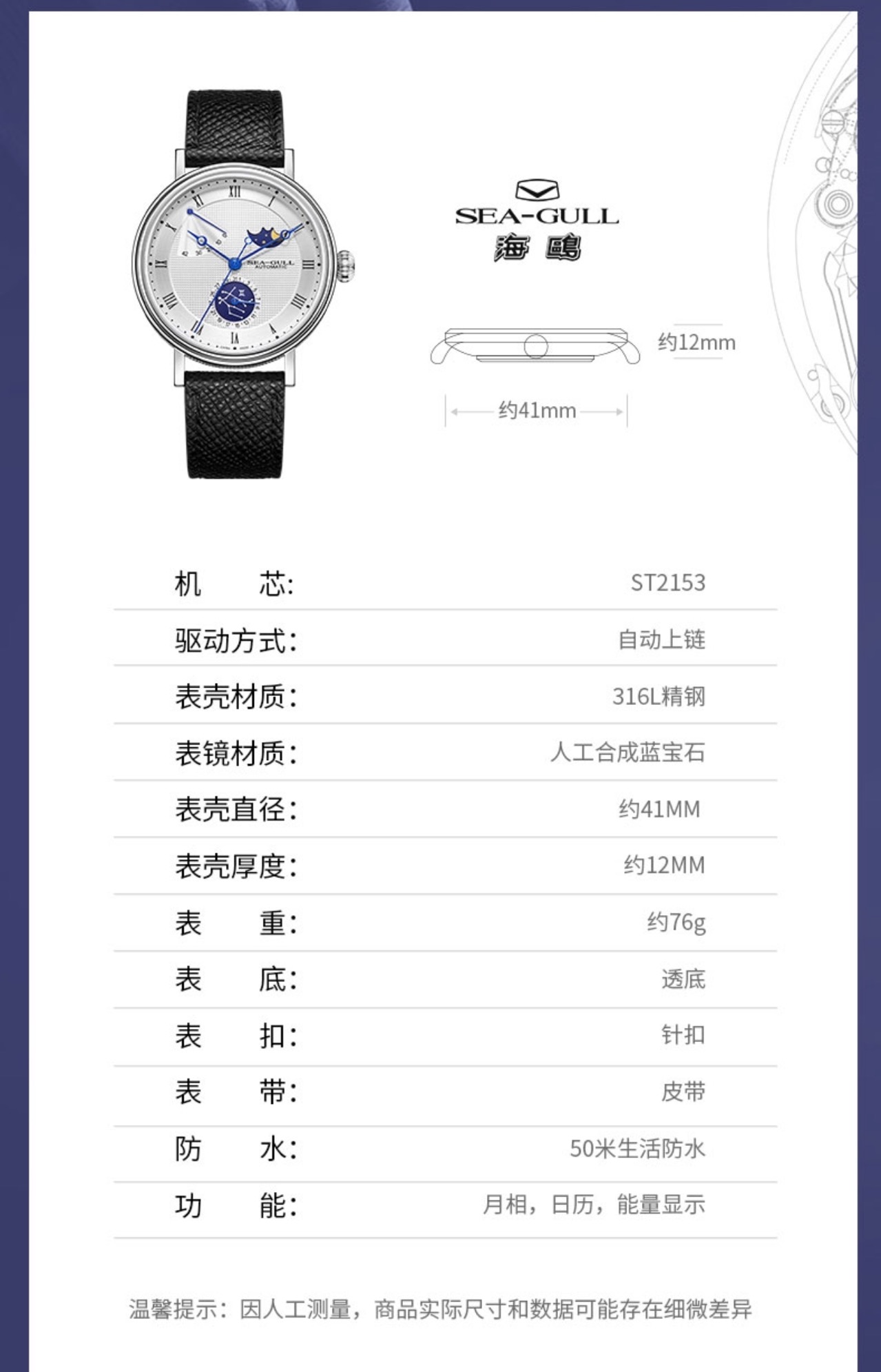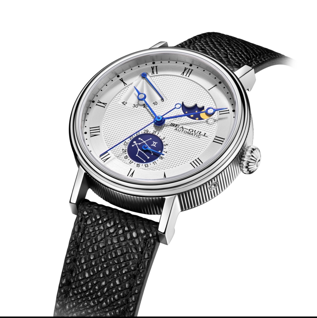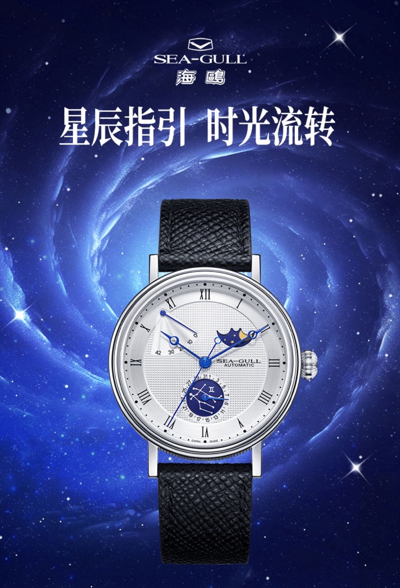 海鸥Sea-Gull 月相十二星座 自动机械机芯 真皮表带 国表 男表 银色表盘 手表男款 星座特别版 819.11.6092ZZ 表径42毫米 专柜售价5280 全新全套全国联保近期保卡