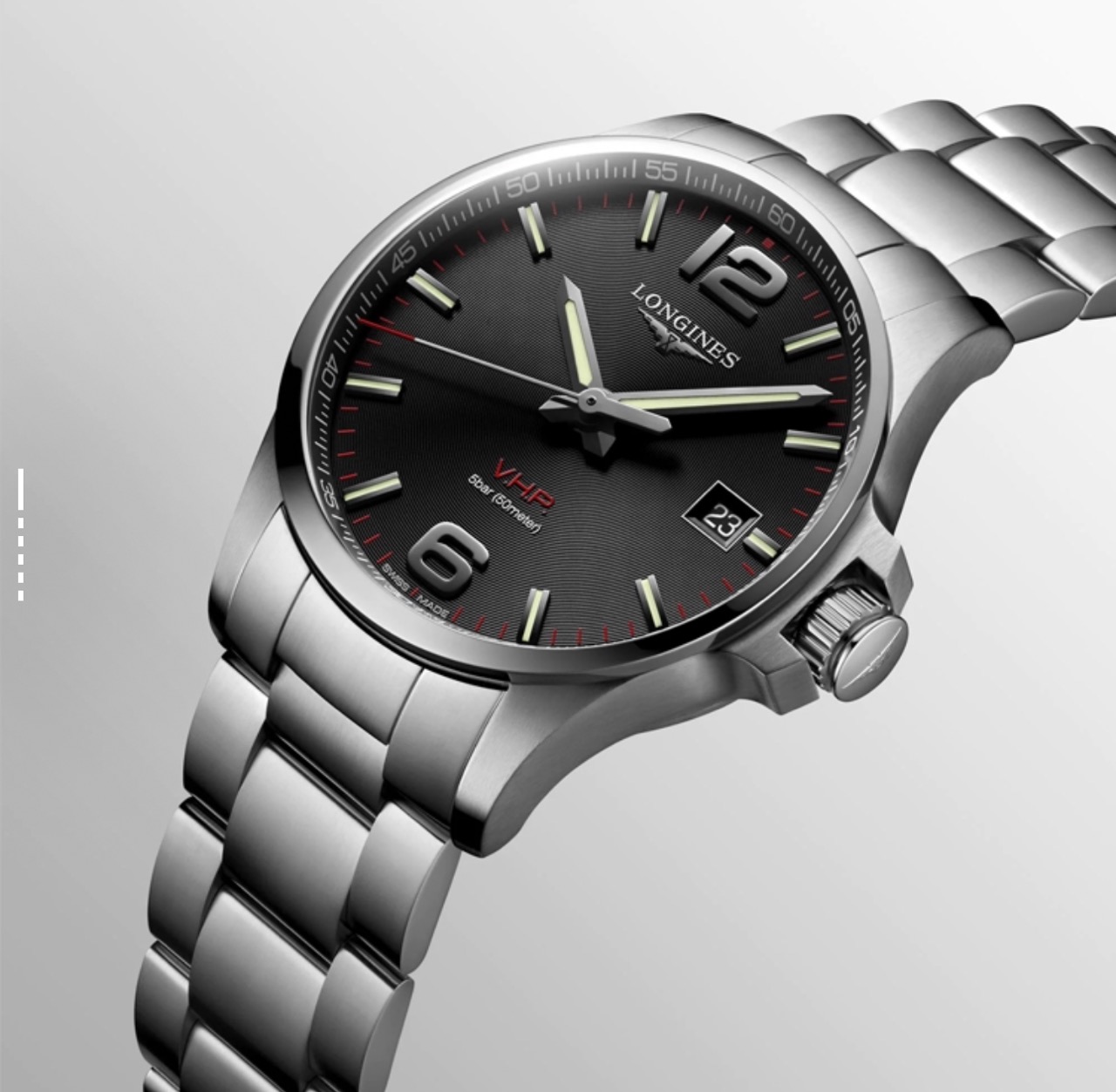 LONGINES浪琴康卡斯系列L3.726.4.56.6石英机芯 50米防水 男表 瑞表 43mm 黑色表盘 精钢表壳 精钢表带 专柜售价10800 全新全套品牌联保近期保卡,预订