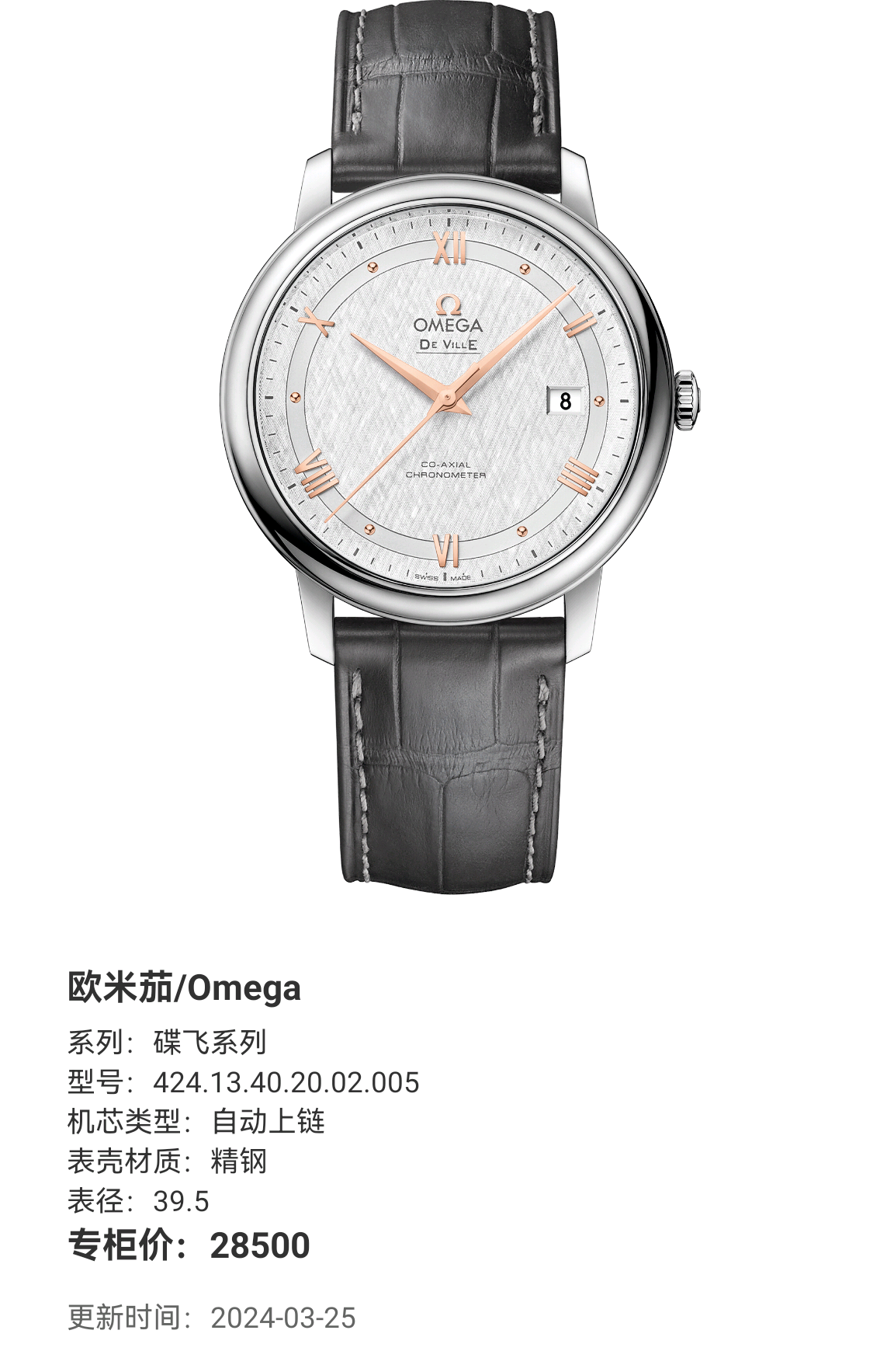 欧米茄/Omega 碟飞系列 424.13.40.20.02.005 自动上链 精钢 39.5 专柜价28500~