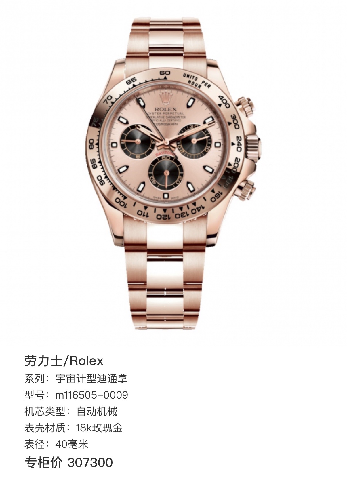 劳力士/Rolex 宇宙计型迪通拿 m116505-0009 自动机械 18k玫瑰金 40表径 贝嫂同款 19年全套 专柜价307300~