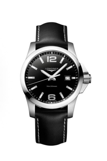 LONGINES浪琴 CONQUEST系列 L3.759.4.58.3石英机芯 男女同款 瑞表 41mm 黑色表盘 精钢表壳 皮革表带 专柜售价7800 全新全套品牌联保近期保卡