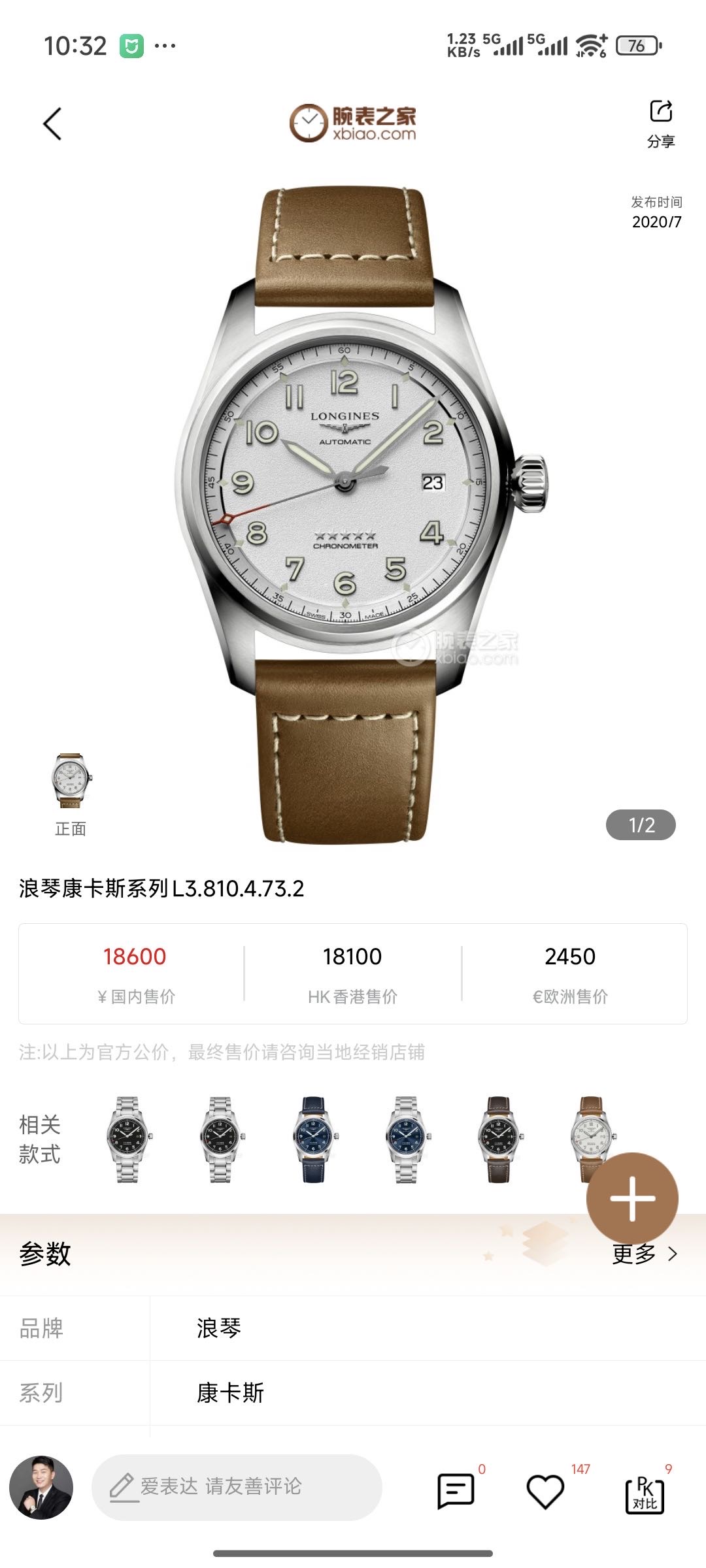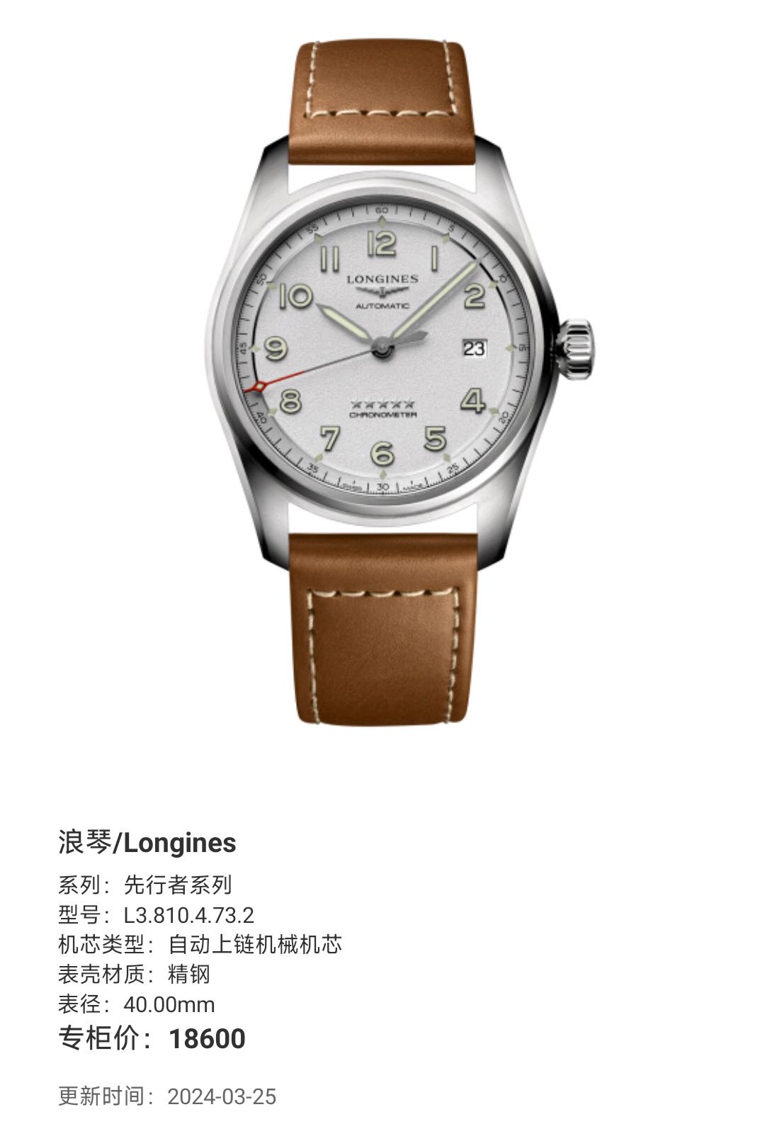 浪琴/Longines 先行者系列 L3.810.4.73.2 自动上链机械机芯 精钢 40.00mm 专柜价18600