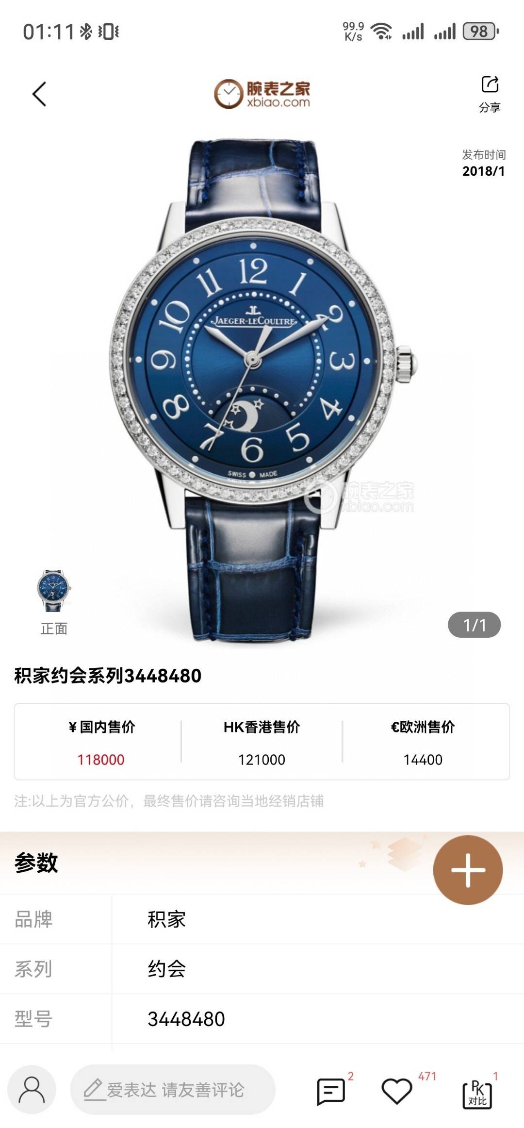 公价118000积家约会系列 型号3448480自动机械 34mm表径 钢材质 20年全套