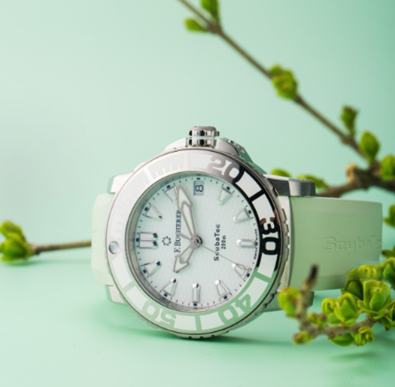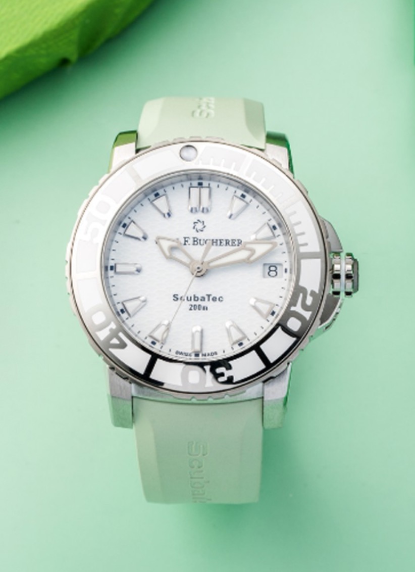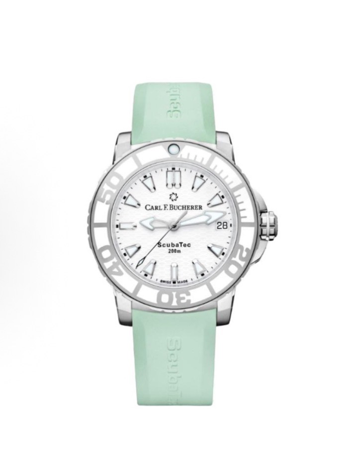 BUCHERER宝齐莱 柏拉维系列 00.10634.23.23.05自动机械机芯 200m 防水 旋入式表冠 女表 瑞表 36.5mm 白色表盘 精钢表壳 橡胶表带 专柜售价38800 全新全套全国联保近期保卡,预订