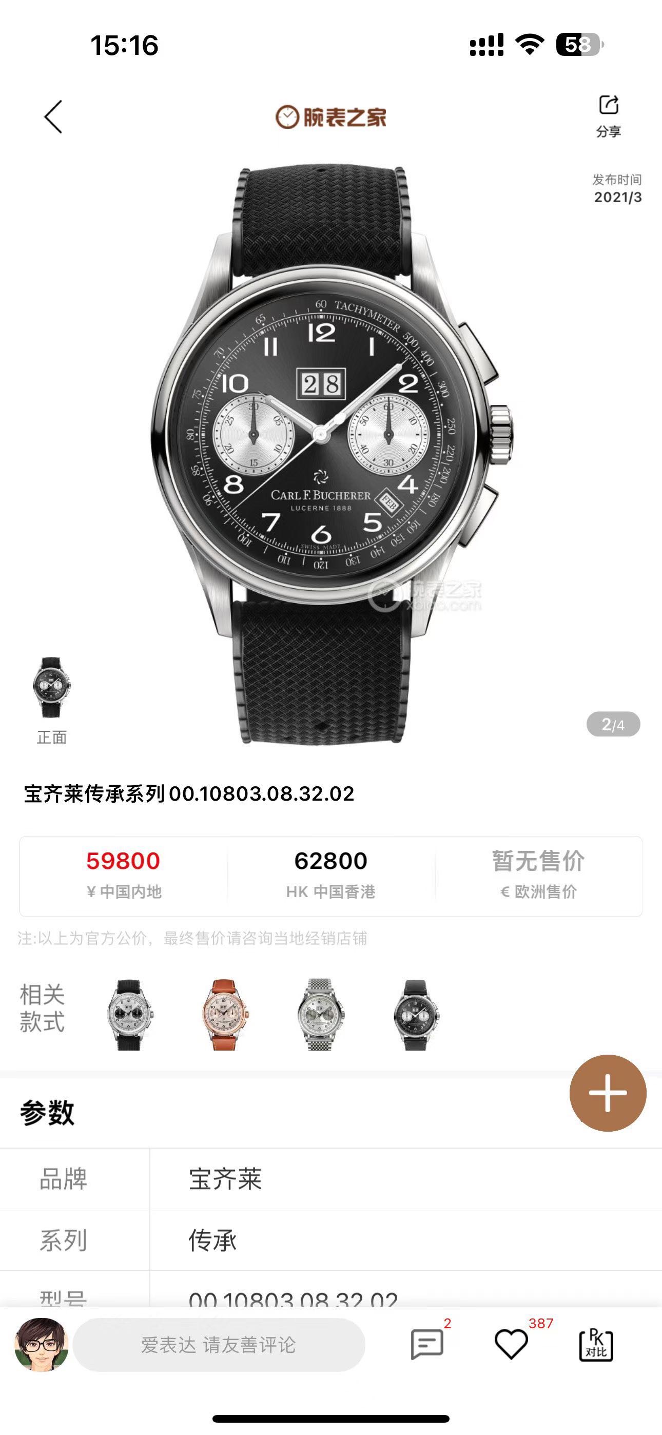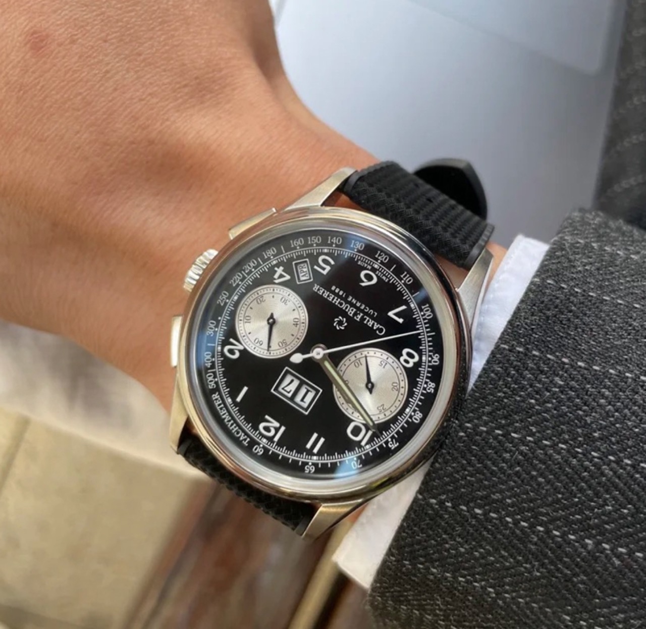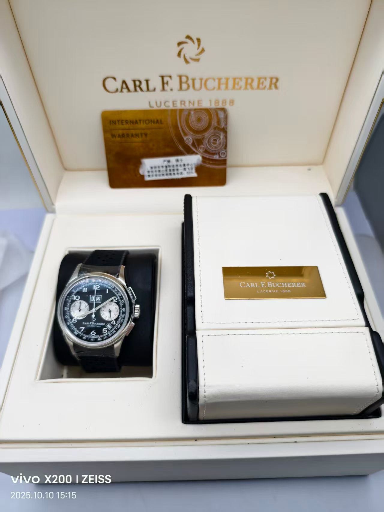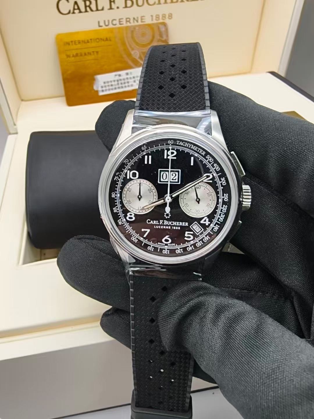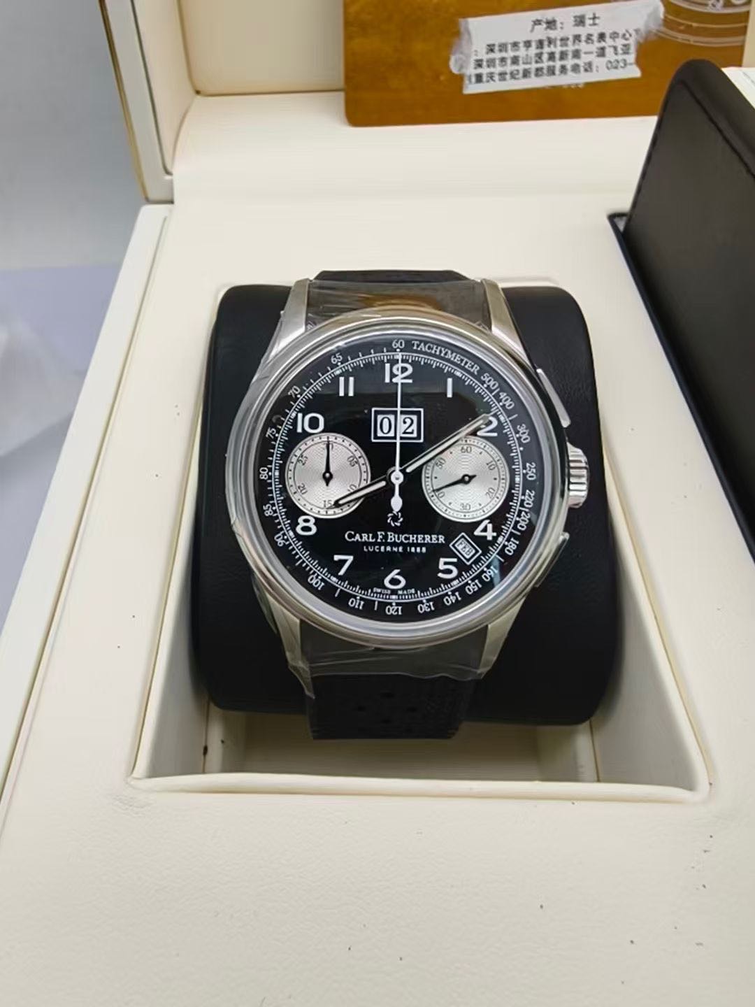 BUCHERER宝齐莱传承系列 00.10803.08.32.02机械机芯 反转熊猫 男表 瑞表 41mm 黑色表盘 精钢表壳 橡胶表带 专柜售价59800全新全套全国联保近期保卡,限时特价预订