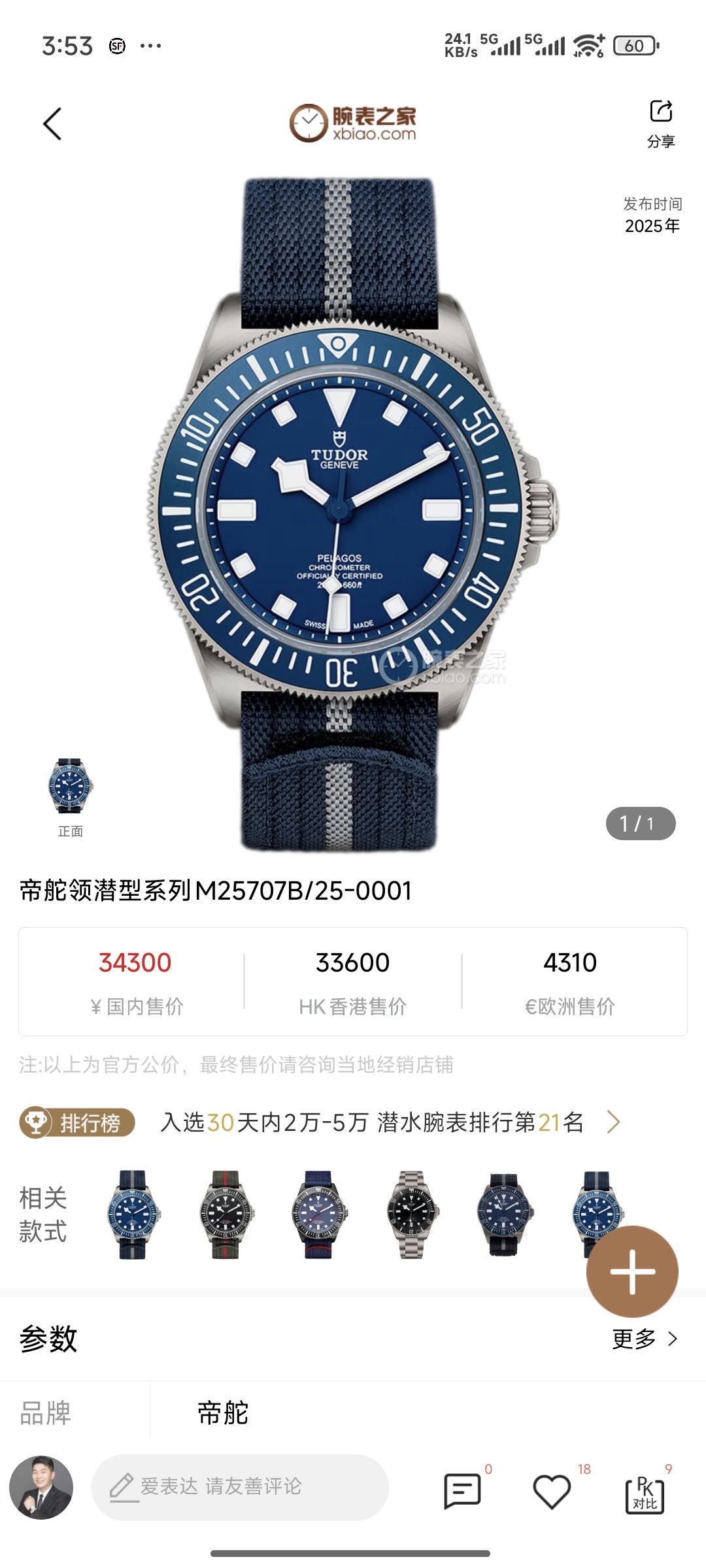 帝舵领潜型系列M25707B/25-0001(M25707B250001)手表