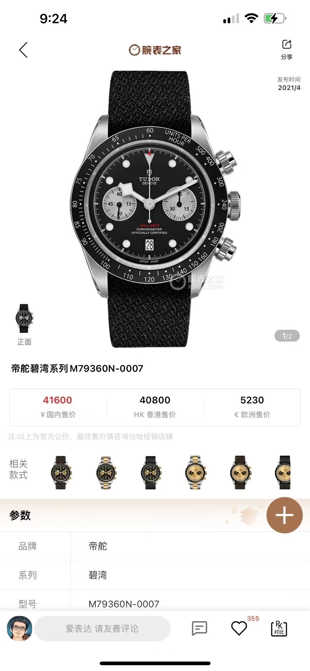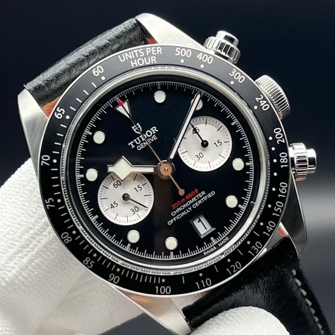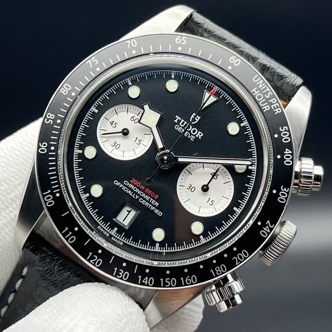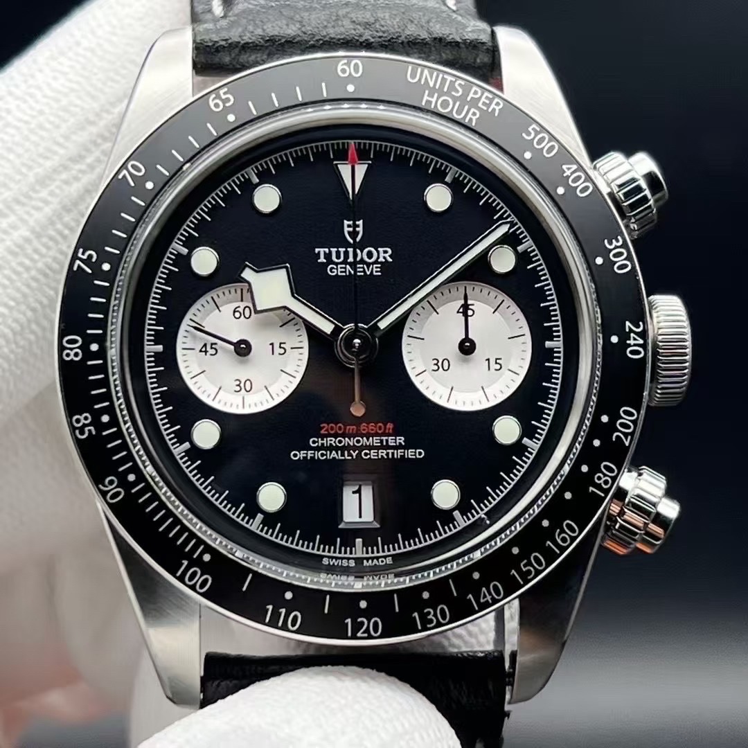 帝舵碧湾系列M79360N-0007,表径41mm,黑白熊猫盘,双眼计时带日历设计,搭载自产机芯,夜光犀利,公价41600,