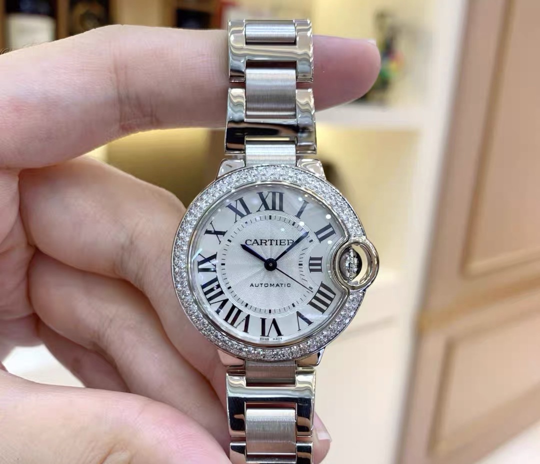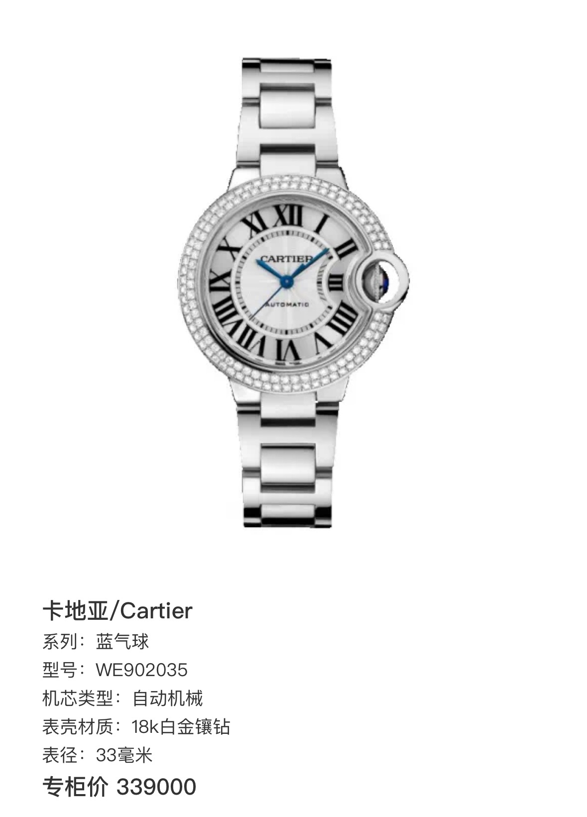 极品全套 卡地亚/Cartier 蓝气球 WE902035 自动机械 18k白金镶钻 33毫米 专柜价339000
