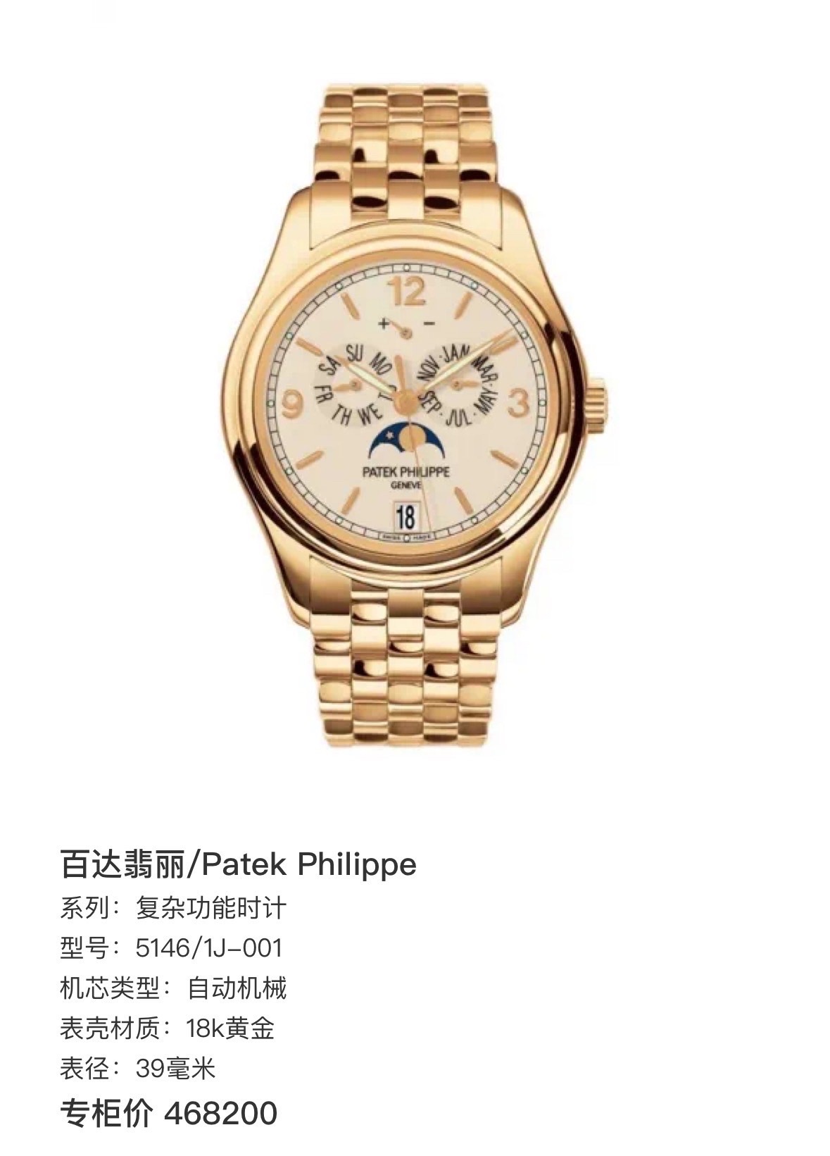 新到!百达翡丽/Patek Philippe 复杂功能时计 5146/1J-001 自动机械 18k黄金 39毫米 专柜价 468200单表 极品成色,现货好价[太阳]~