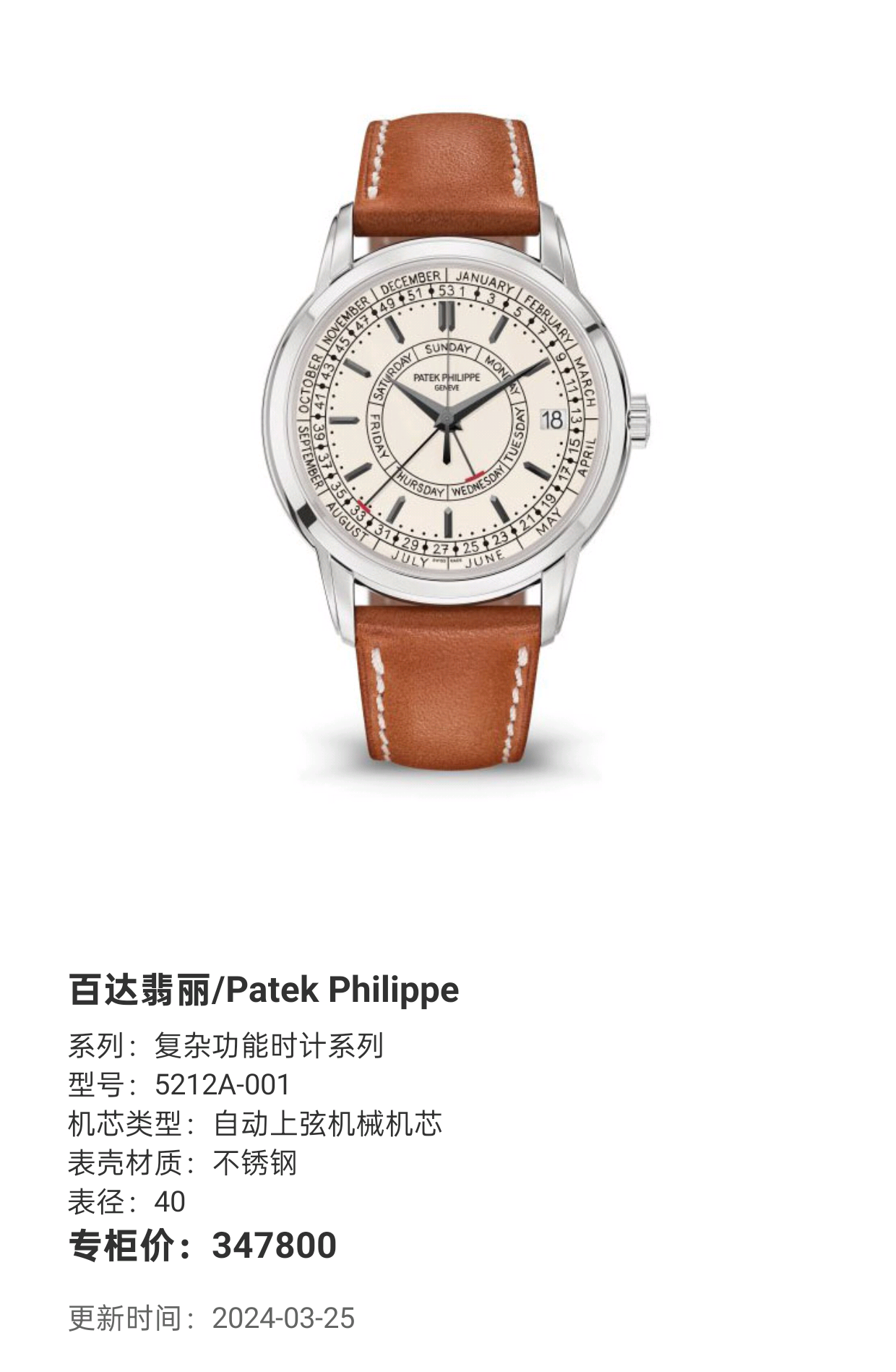 百达翡丽复杂功能时计系列 5212A-001