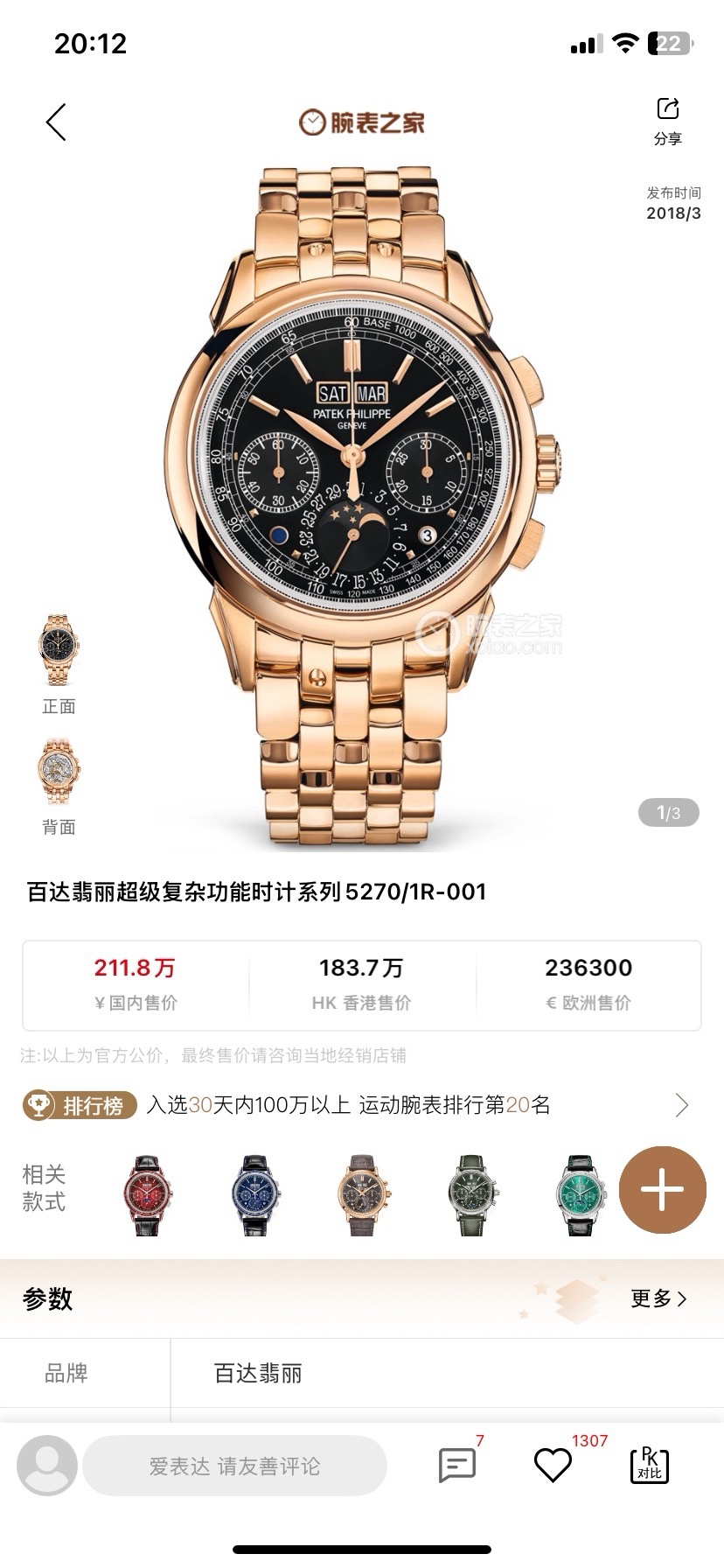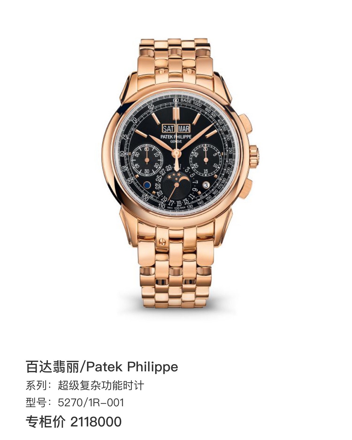 百达翡丽/Patek Philippe 超级复杂功能时计 5270/1R-001 专柜价2118000