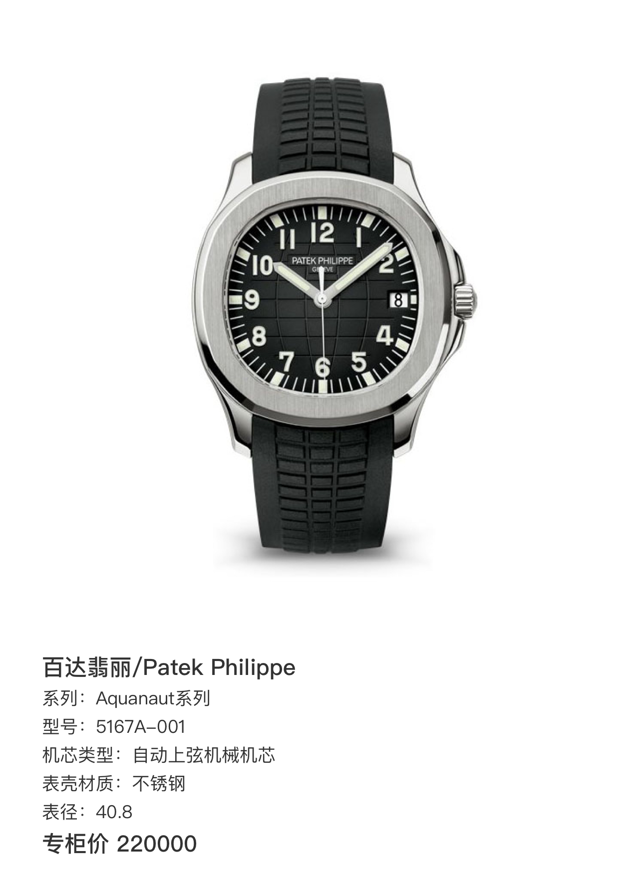 百达翡丽Aquanaut 手雷 5167A-001机械男性