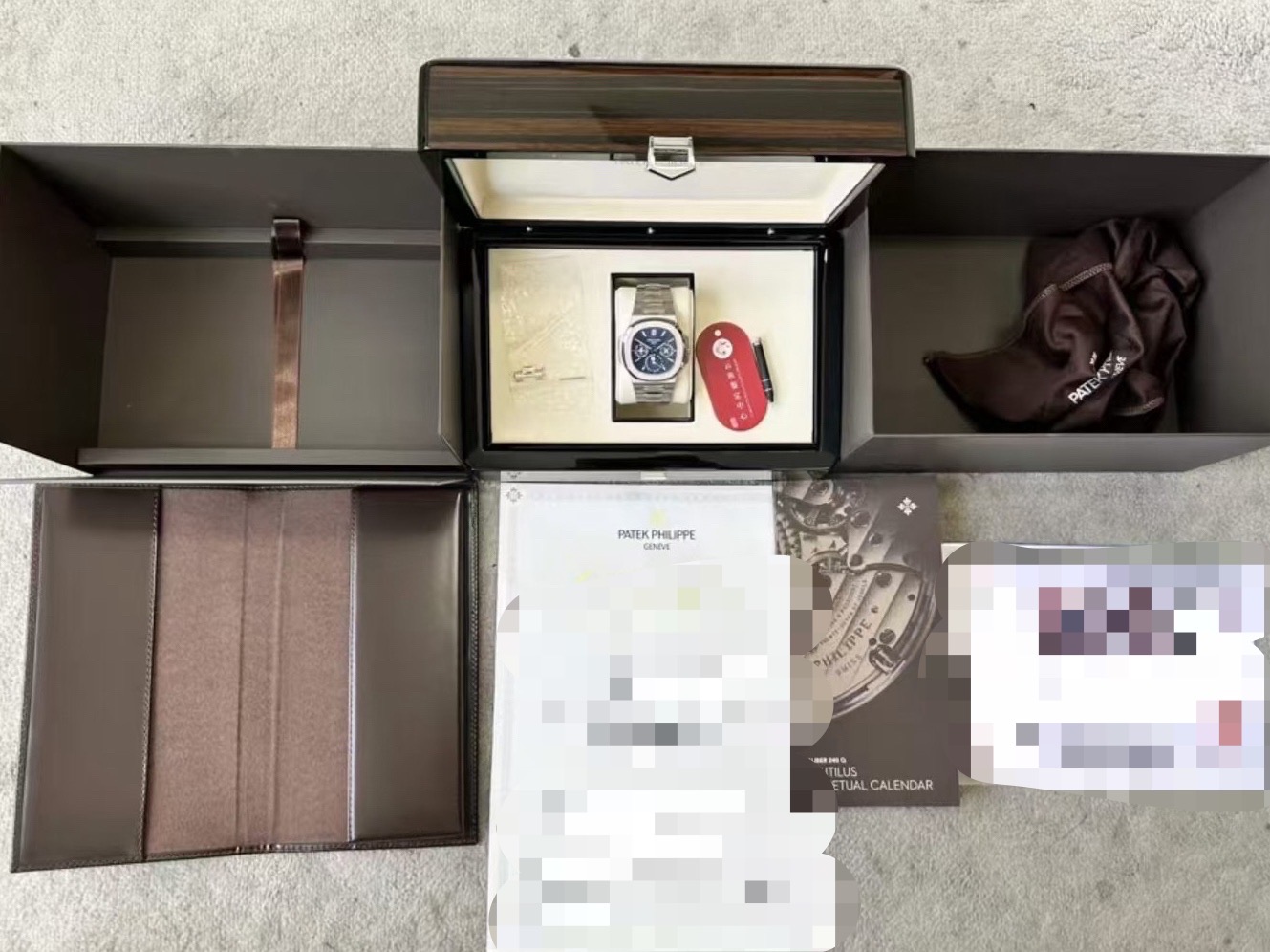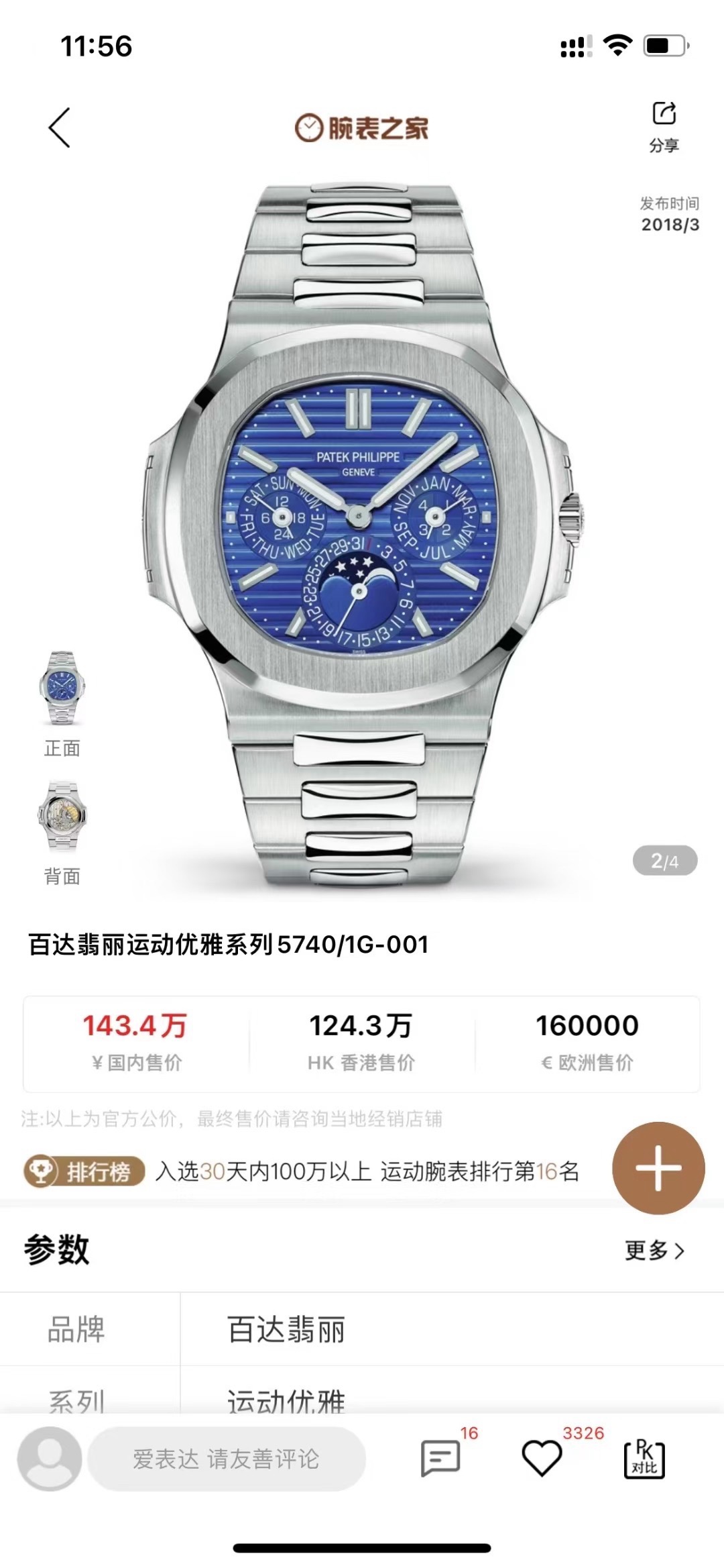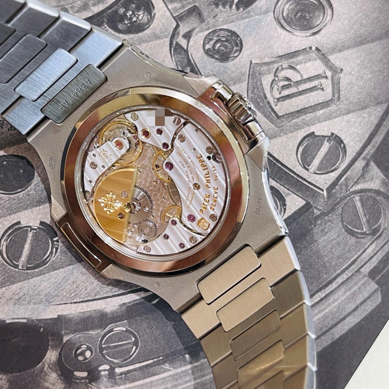 百达翡丽运动优雅系列5740G,白金万年历蓝盘,最热门款鹦鹉螺之一,40mm表径,18k白金材质,