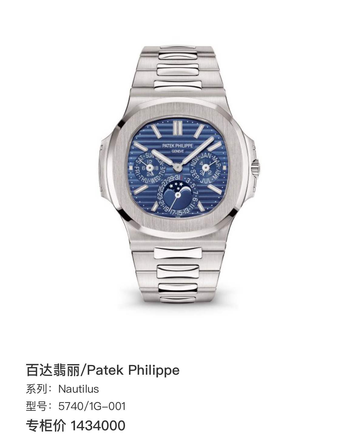 百达翡丽/Patek Philippe Nautilus 5740/1G-001 专柜价1434000