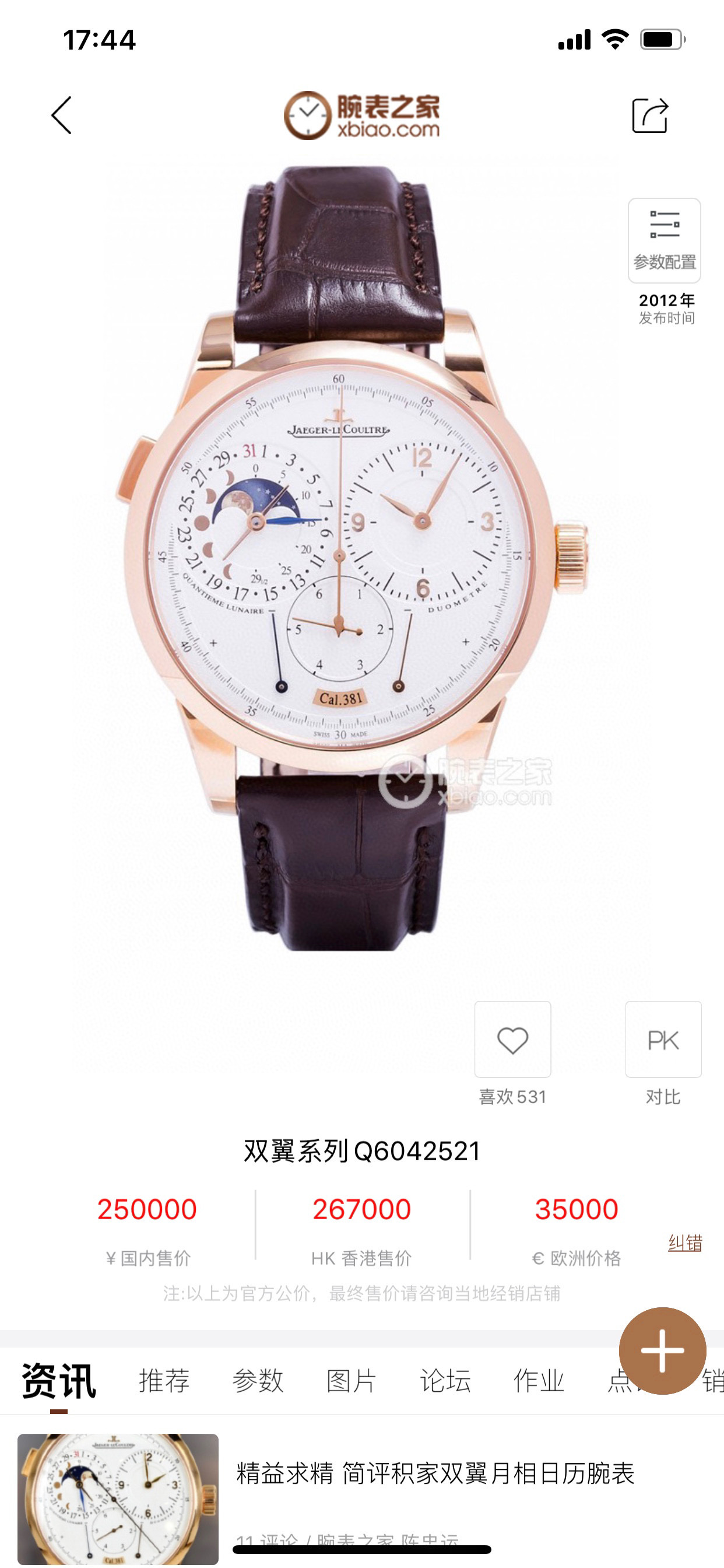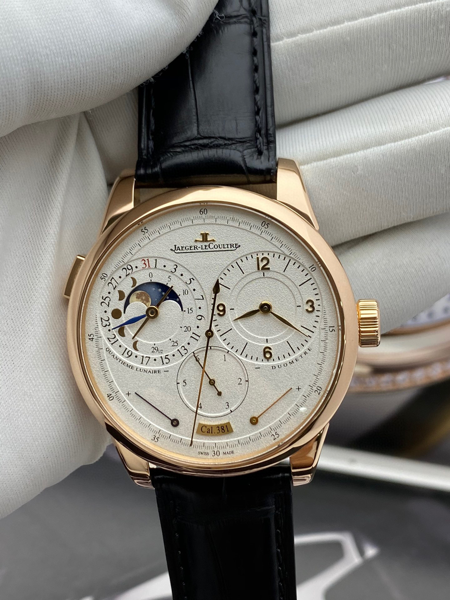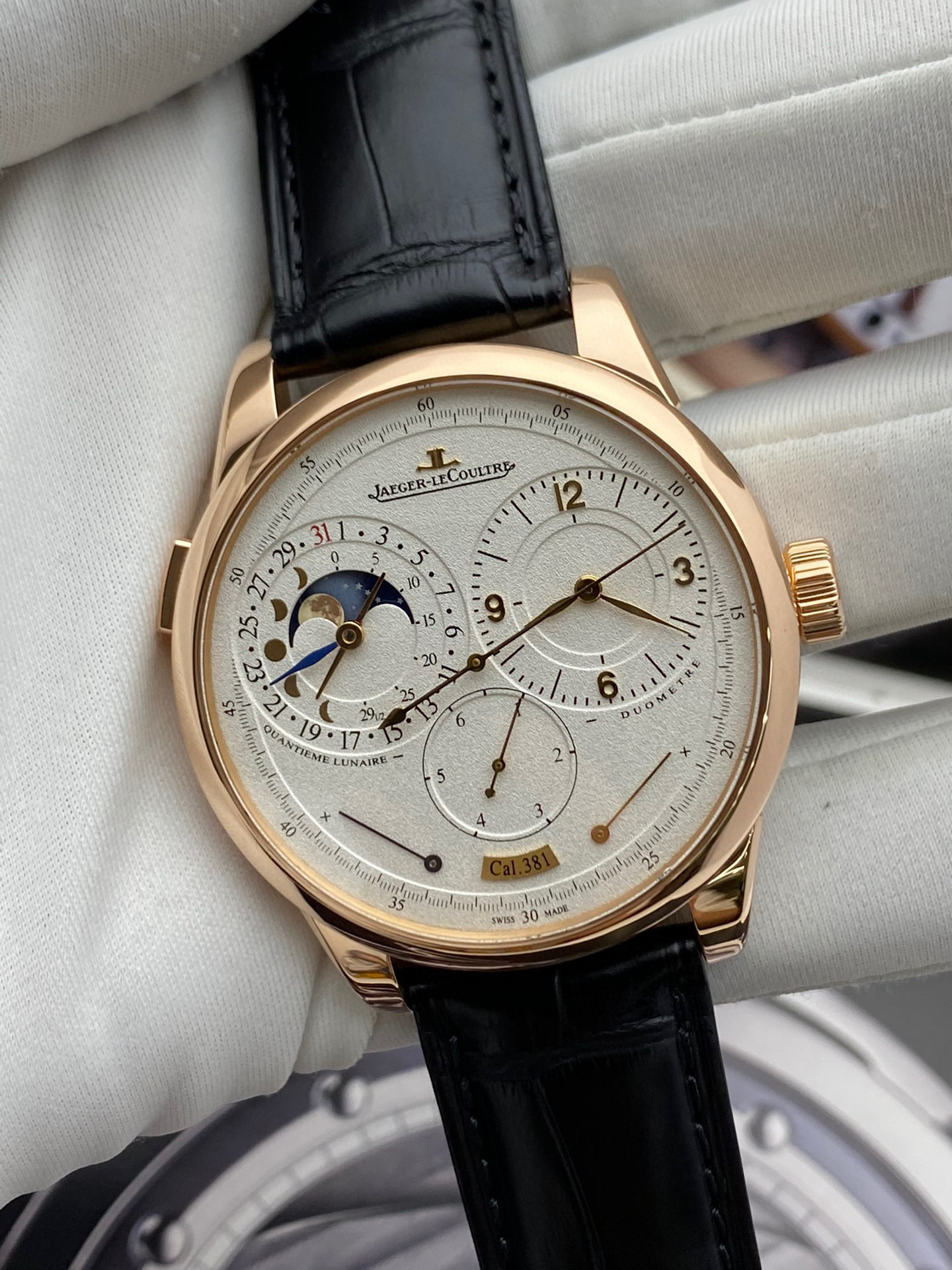 积家双翼系列Q6042521、单表、40.5盘、手动机械、日历.月相显示、动力储存显示、1/6跳秒、专柜售价250000