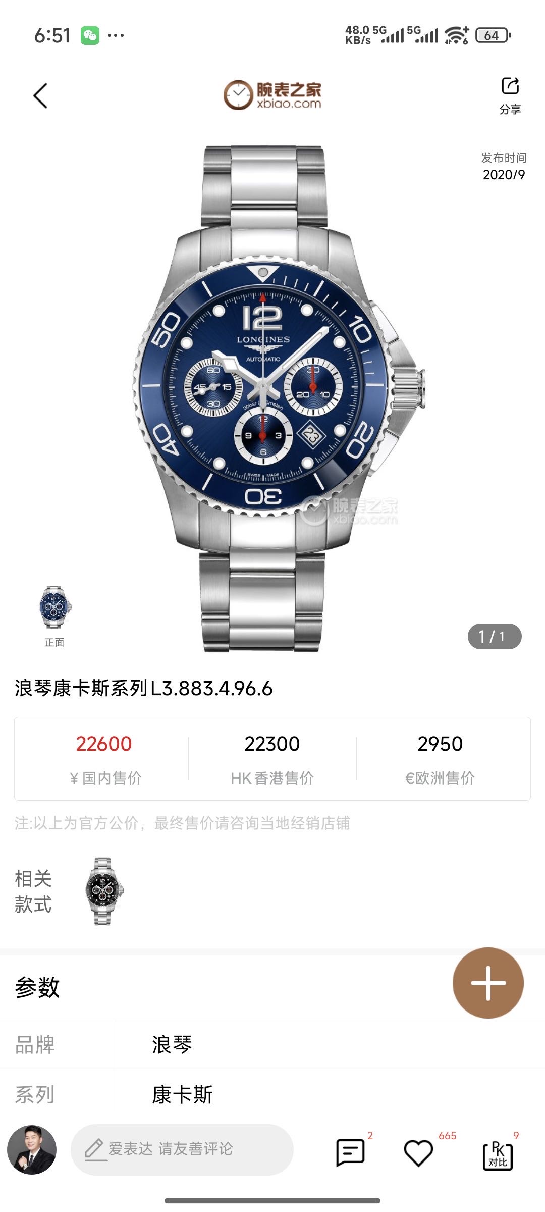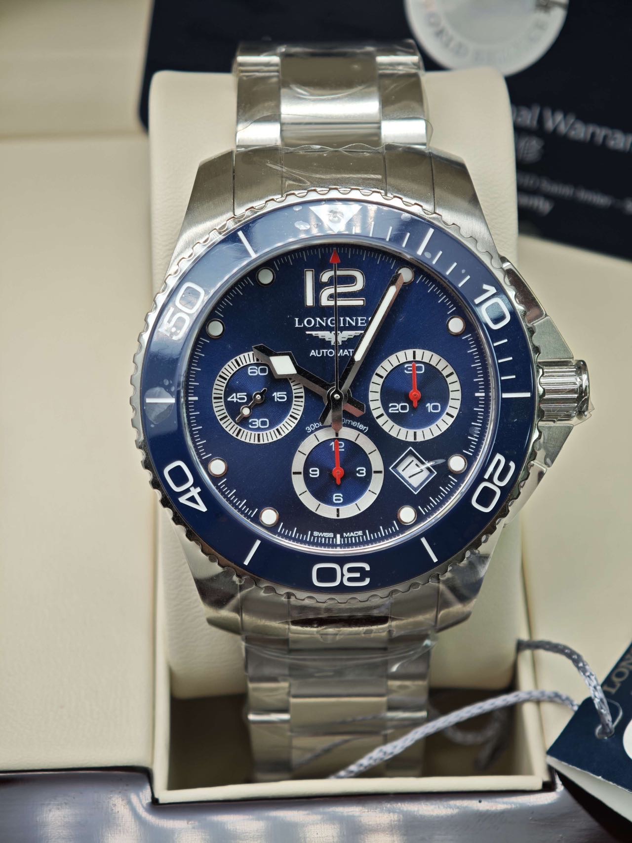 浪琴/Longines 康卡斯潜水系列 L3.883.4.96.6 自动上链机械机芯 精钢及陶瓷 43.00mm 专柜价22600元 国行全新未使用25年7月卡