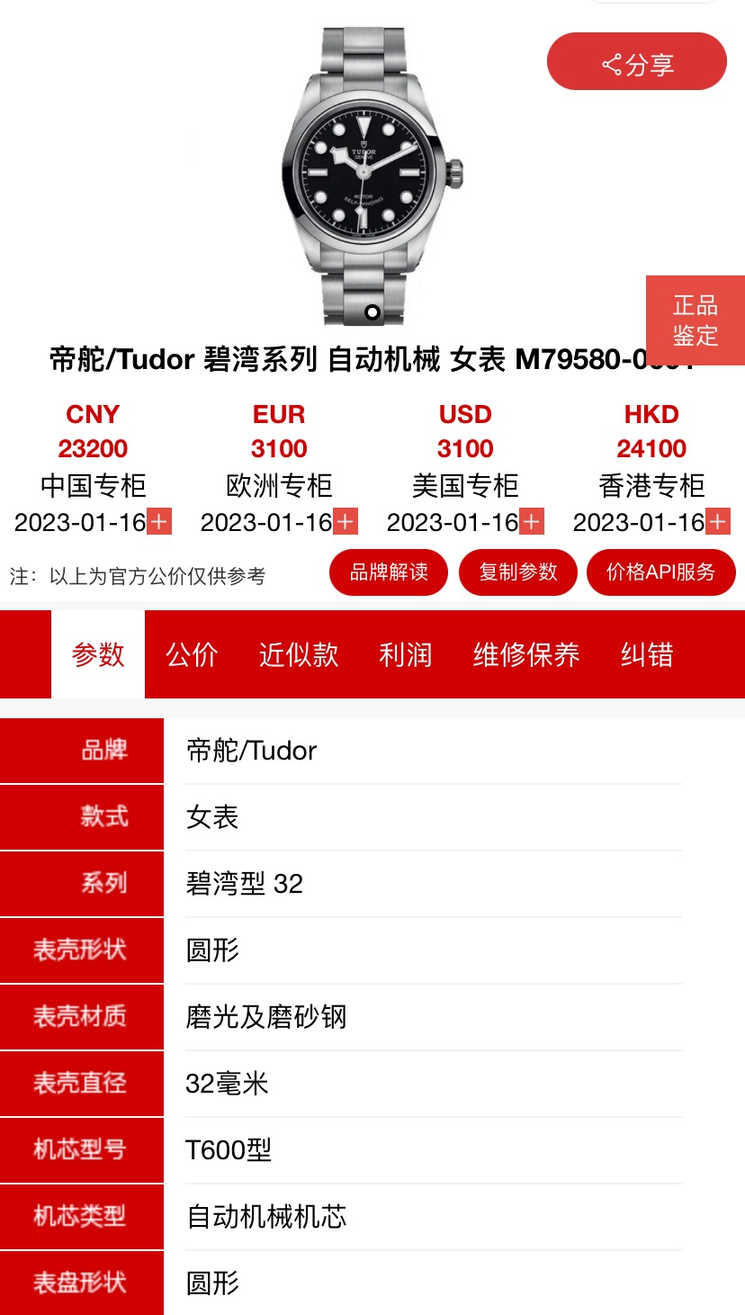 帝舵碧湾系列 M79580-0001女表 32mm表径,国行全新全套官方保修5年!专柜售价23200,25年近期保卡好折扣
