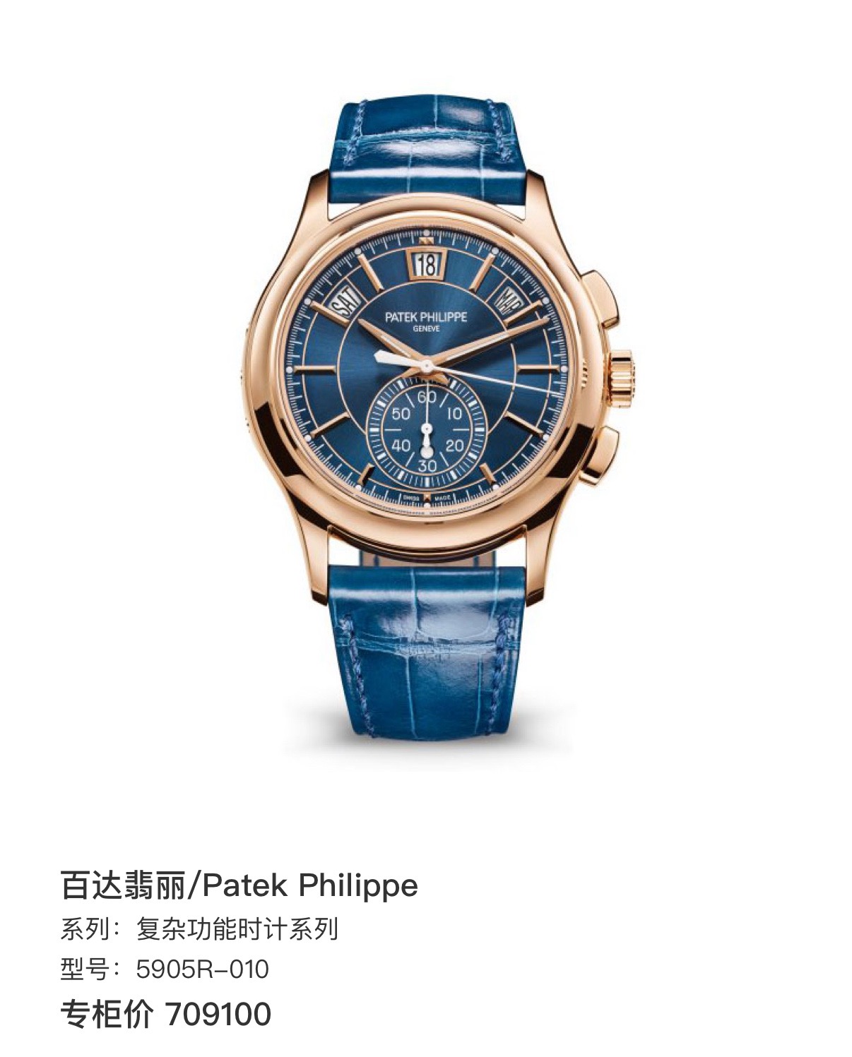 百达翡丽/Patek Philippe 复杂功能时计系列 5905R-010 专柜价709100
