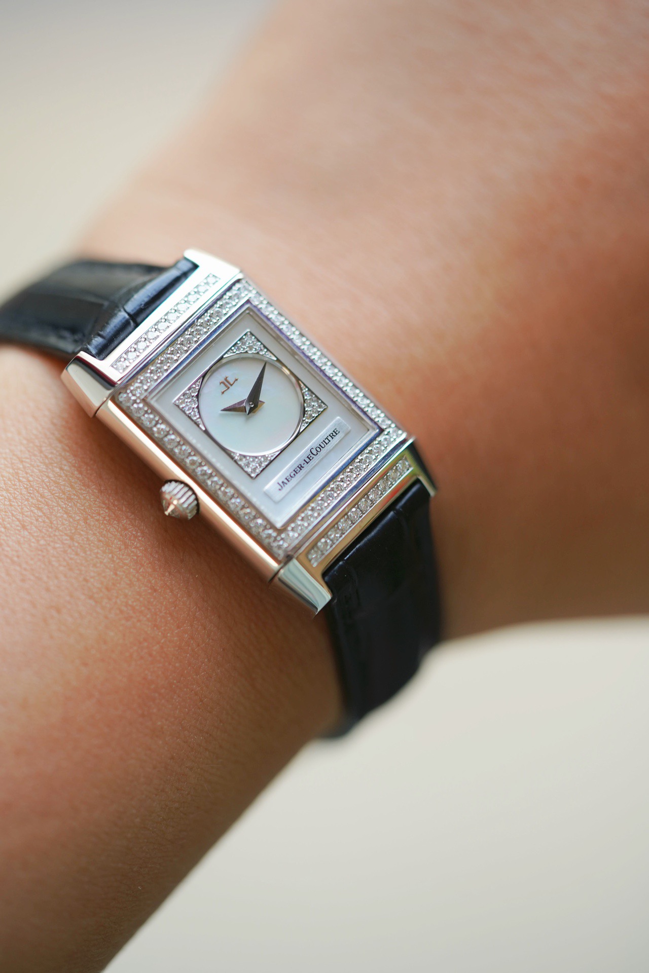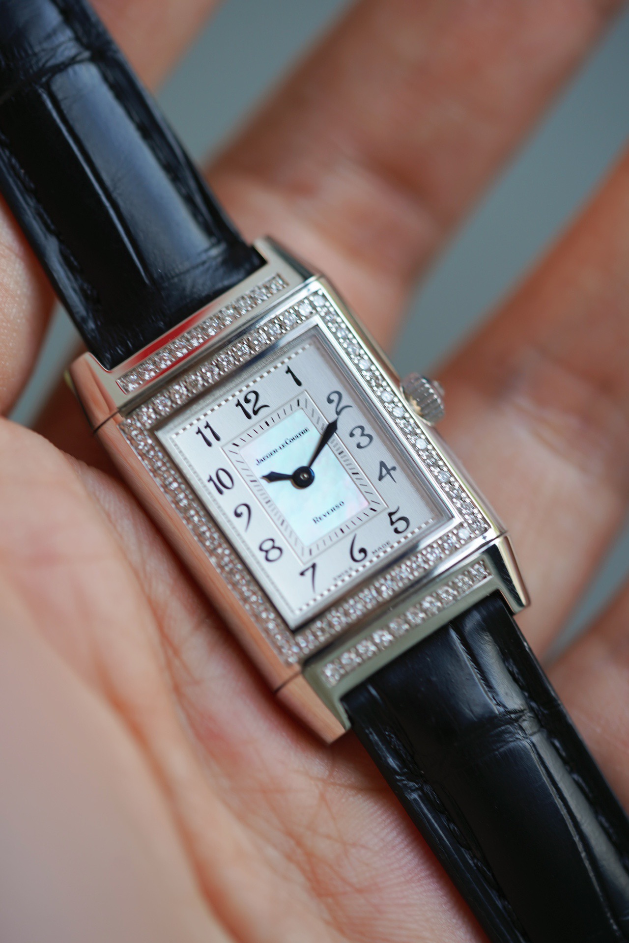 公价298000积家翻转腕表系列 型号Q2663401手动机械 38x23mm表径18k白金镶钻材质 单表