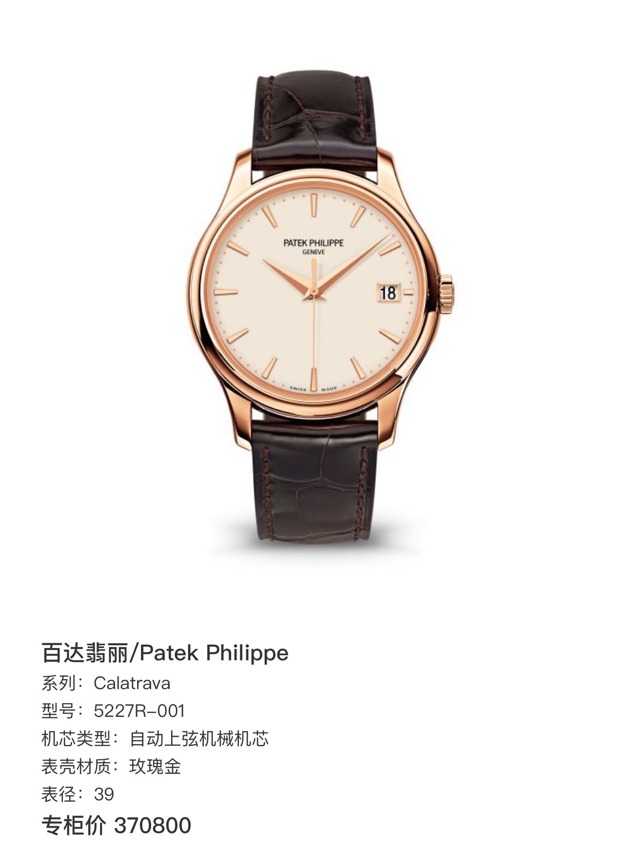 百达翡丽Calatrava系列5227R-001 自动上弦机械机芯 玫瑰金 39 专柜价370800