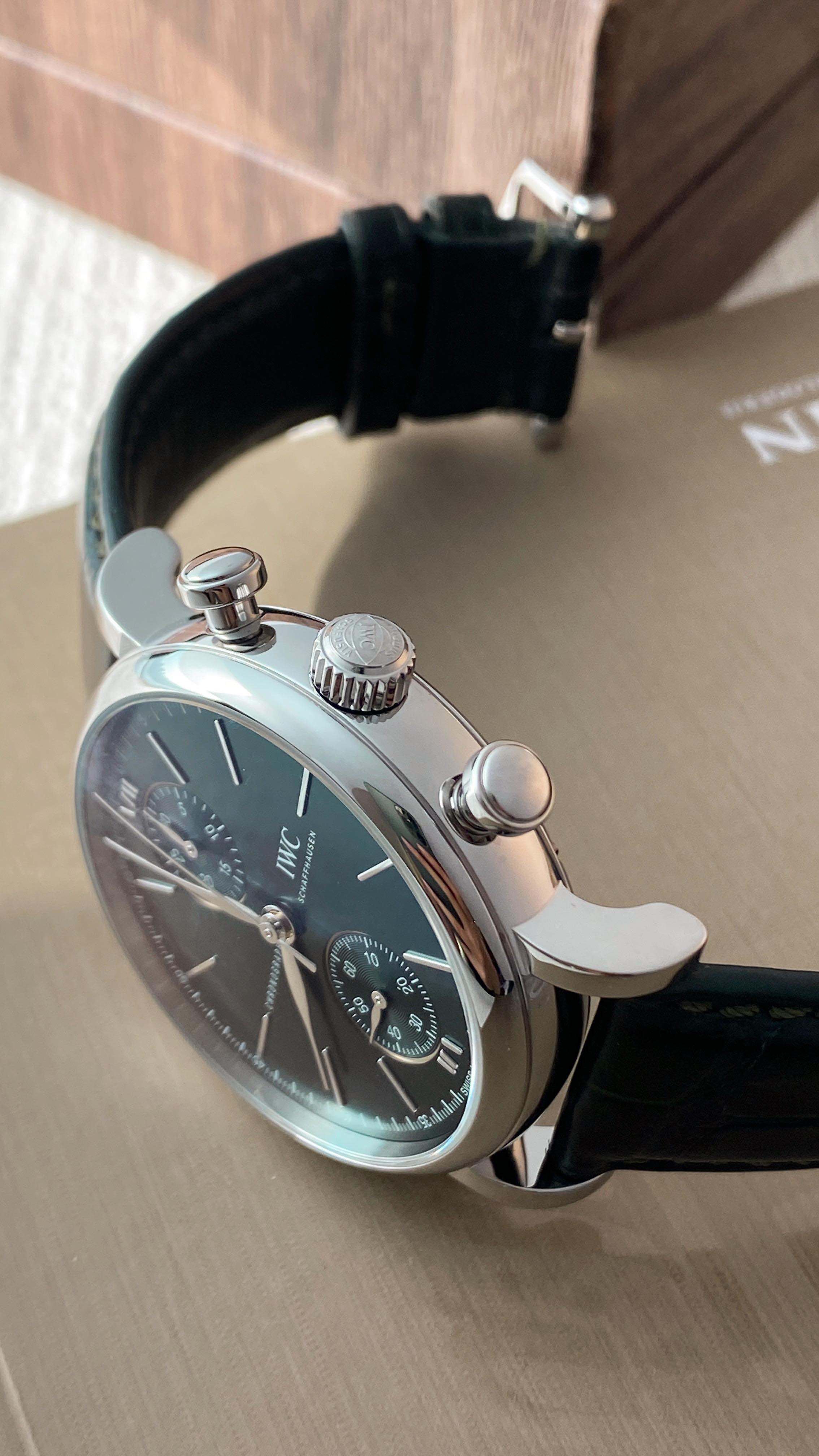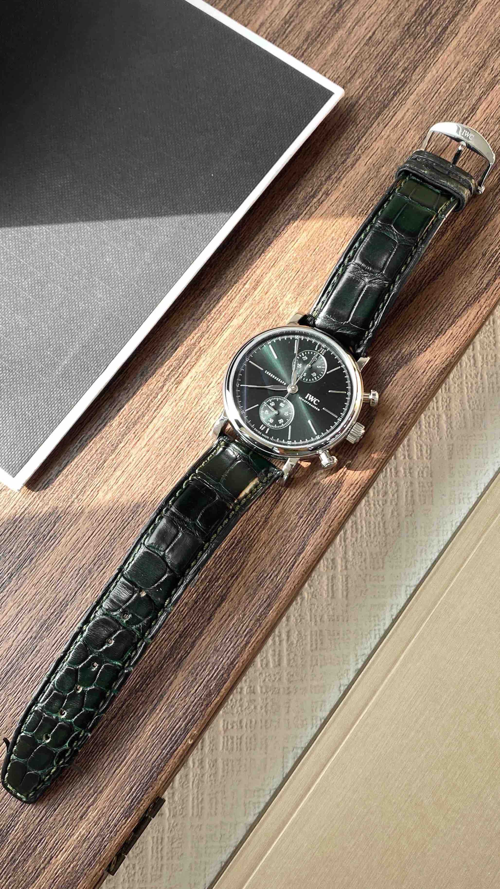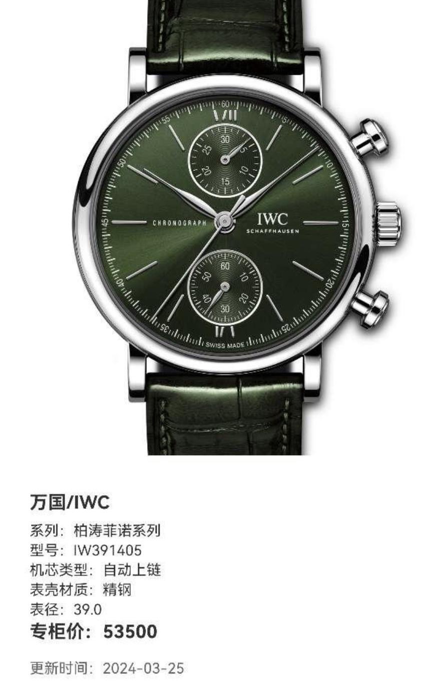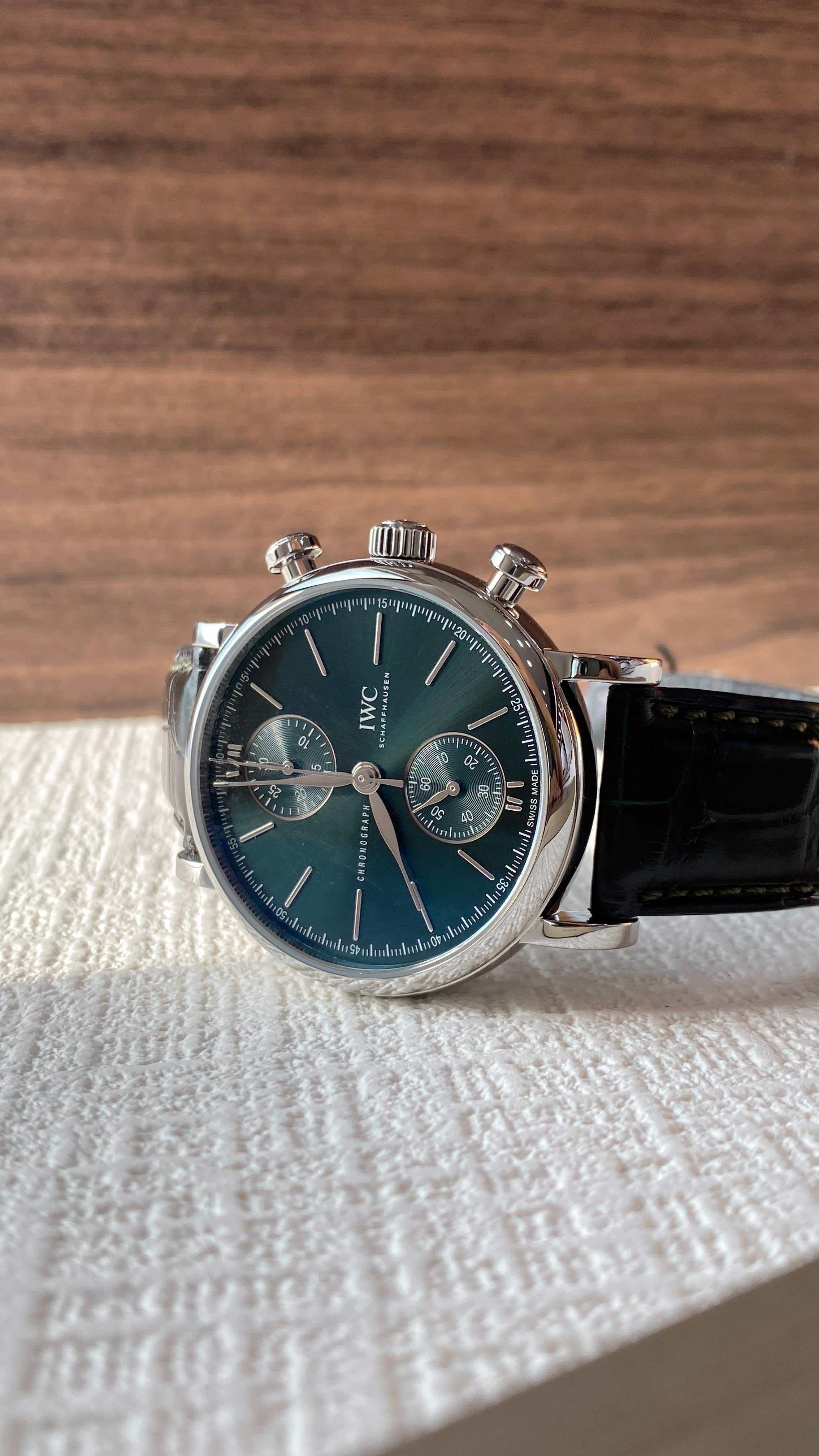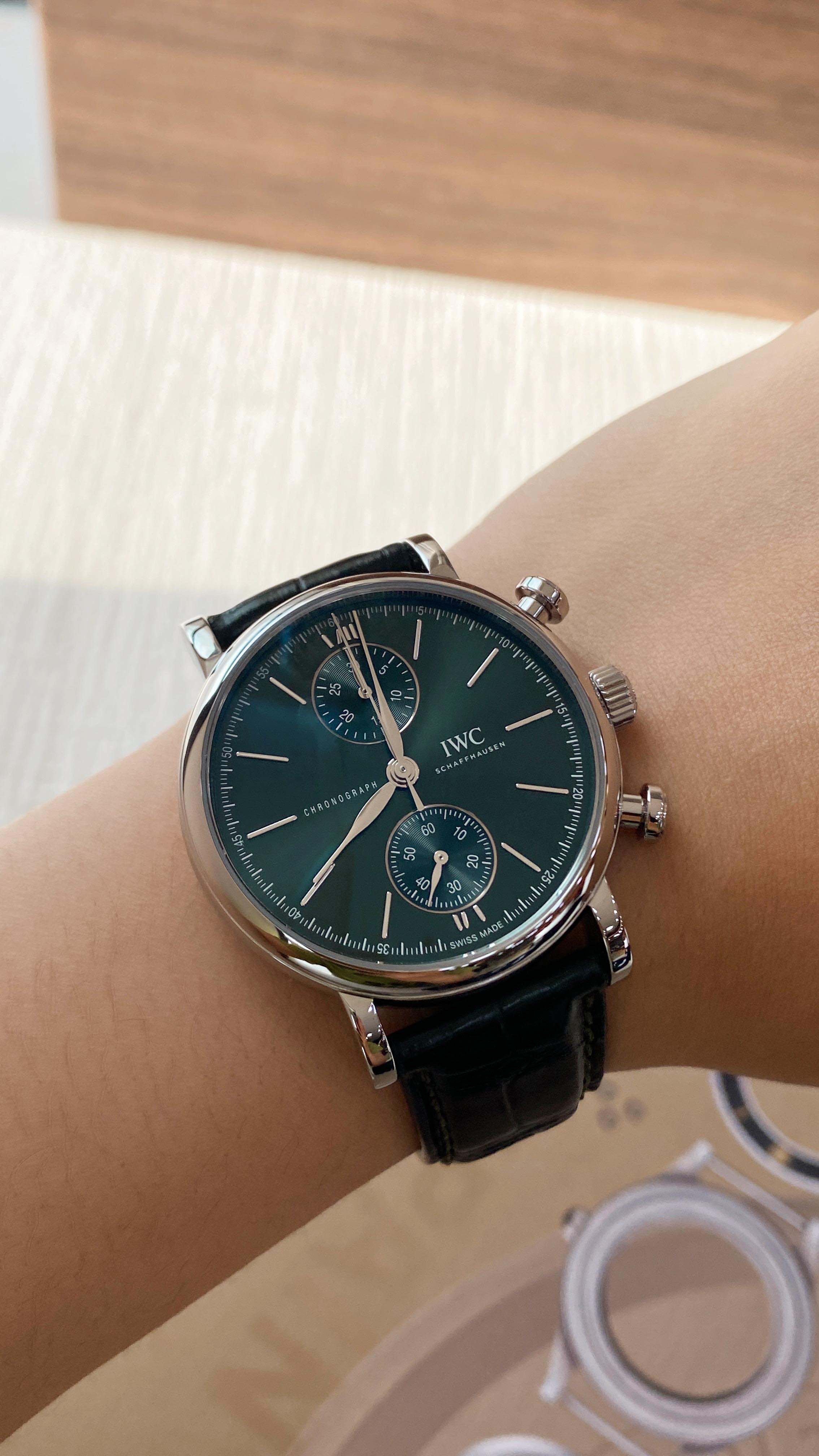 全套万国/柏涛菲诺系列 IW391405 男士自动机械腕表 新款柏涛菲诺 表径39.0毫米 动力储备44个小时 绿色表盘 采用精钢材质打造 专柜价53500