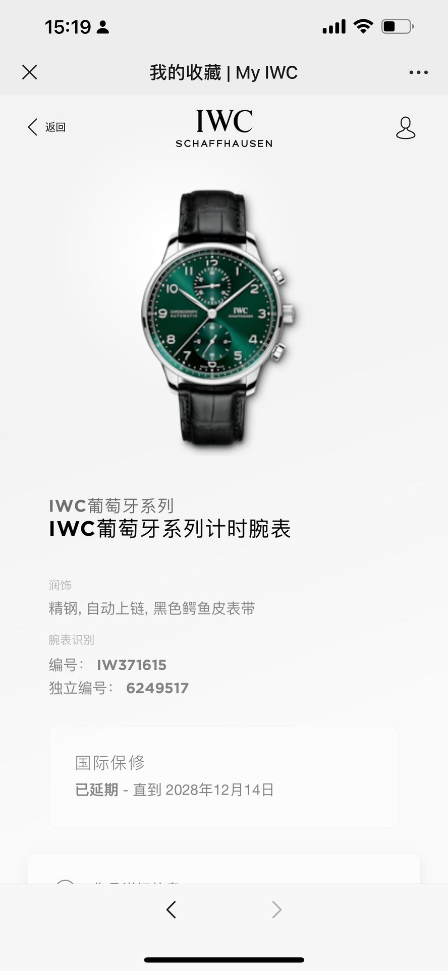 已延保 2020年全套 万国 葡萄牙计时腕表 系列 IW371615 公价:64800 表径:41毫米 表壳厚度:13.1毫米 机芯型号:69355 机芯类型:自动机械 动力储备:46小时