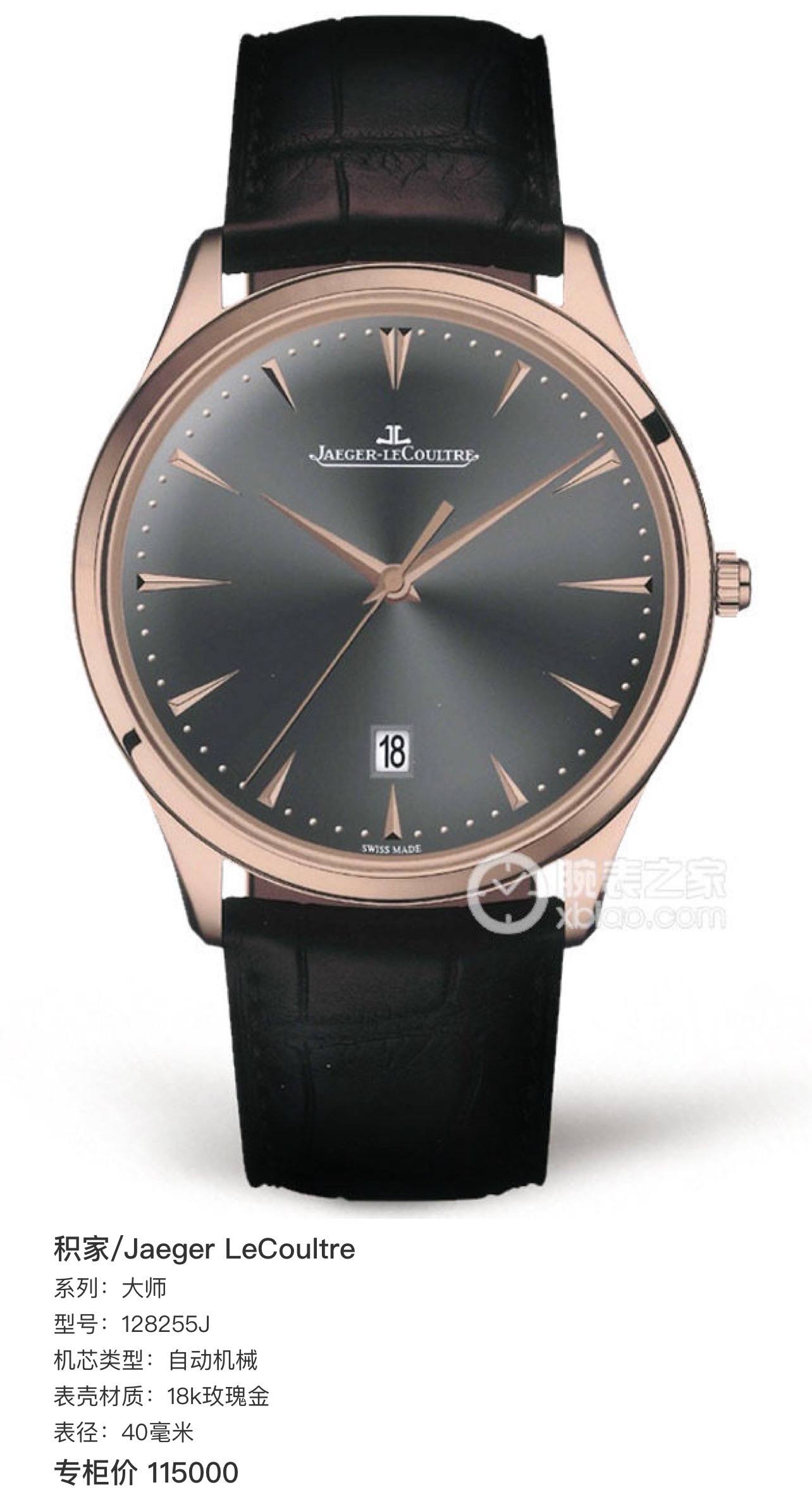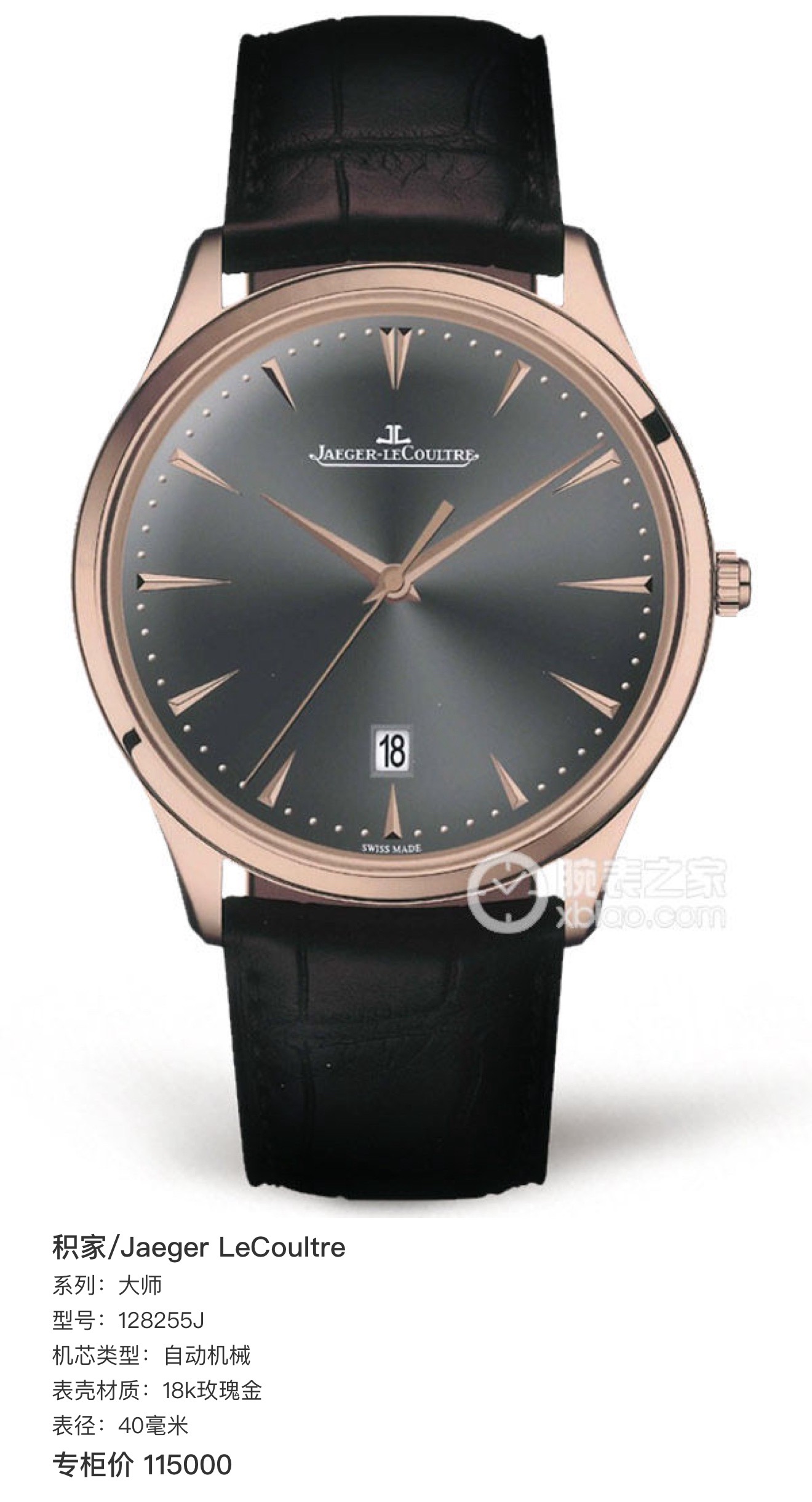 积家/Jaeger LeCoultre 大师 128255J 自动机械 18k玫瑰金 40毫米 专柜价115000