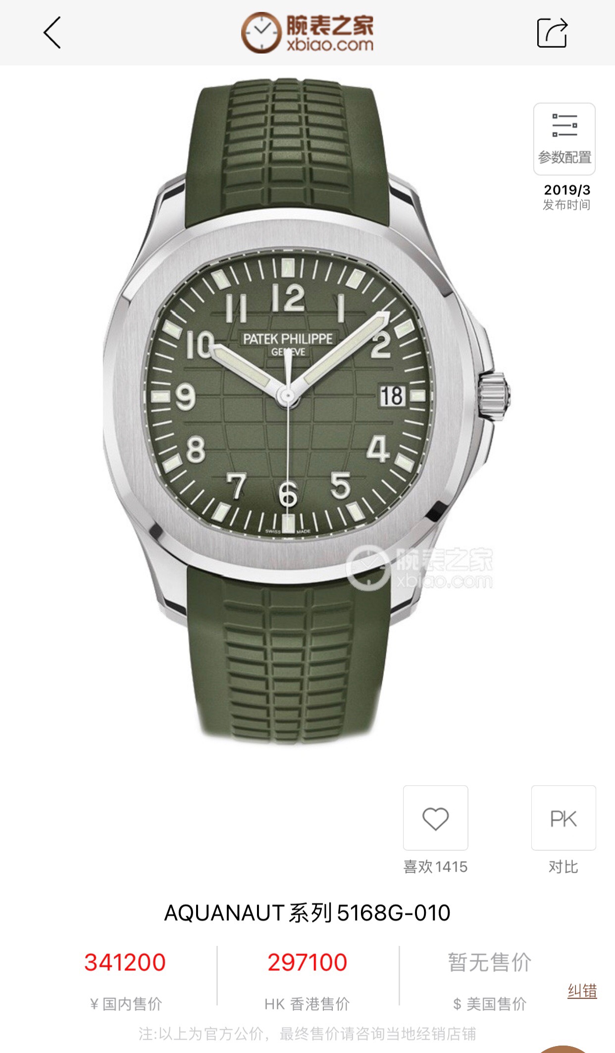 百达翡丽~5168G 白金手雷 牛油果 绿 未使用品 最稳定的理财 新款百达翡丽雕花表扣 ~