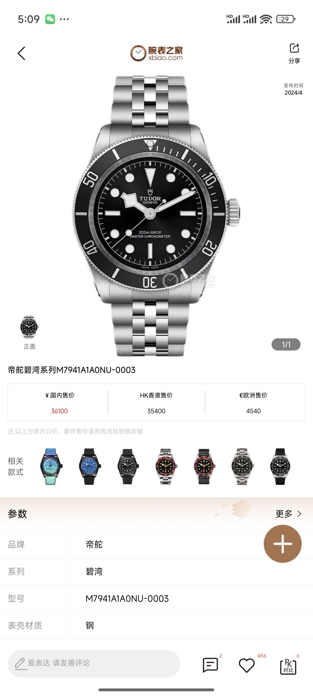 帝舵/Tudor 碧湾 m7941a1a0nu-0003 帝舵表原厂机芯MT5602-U型