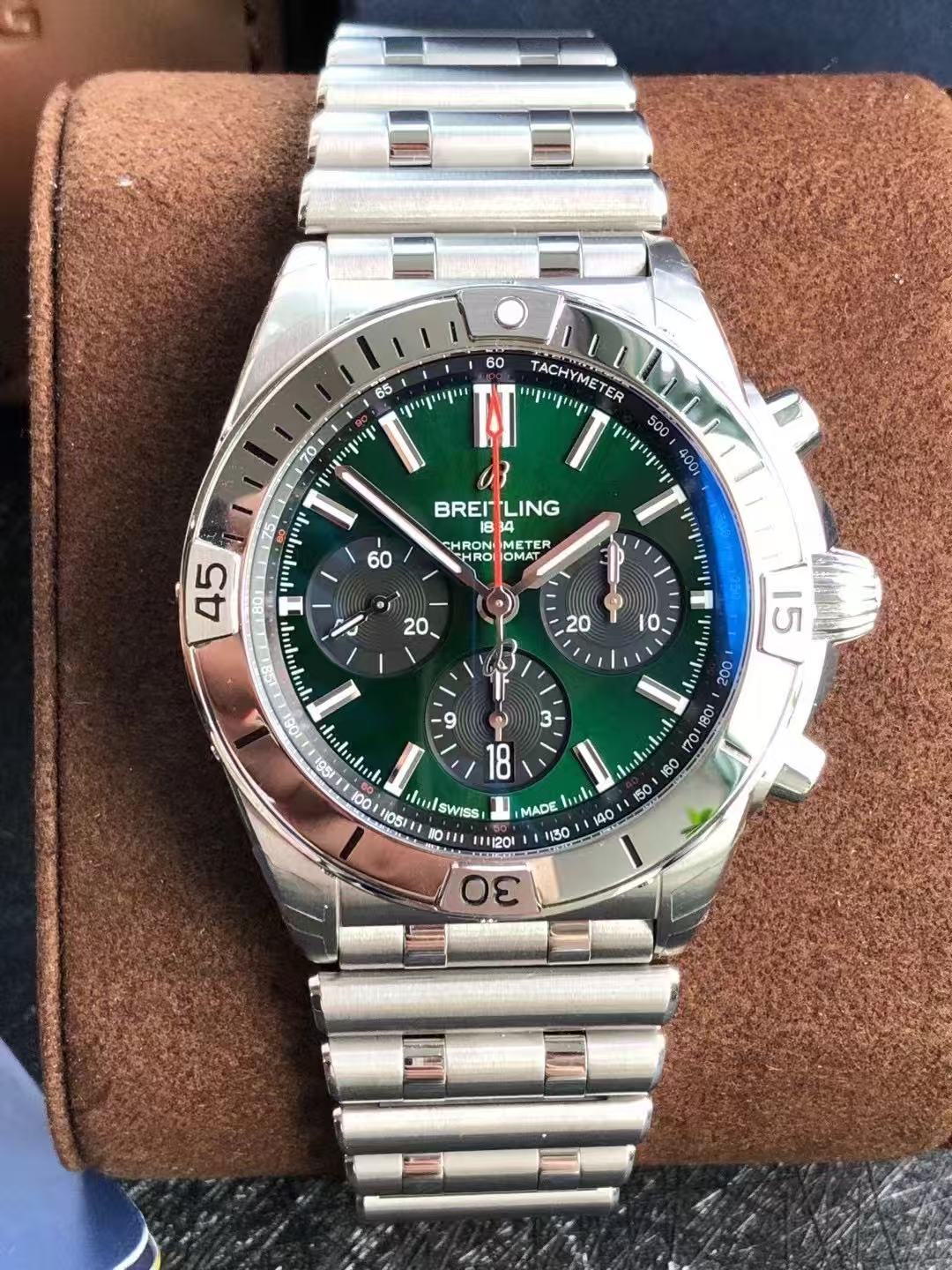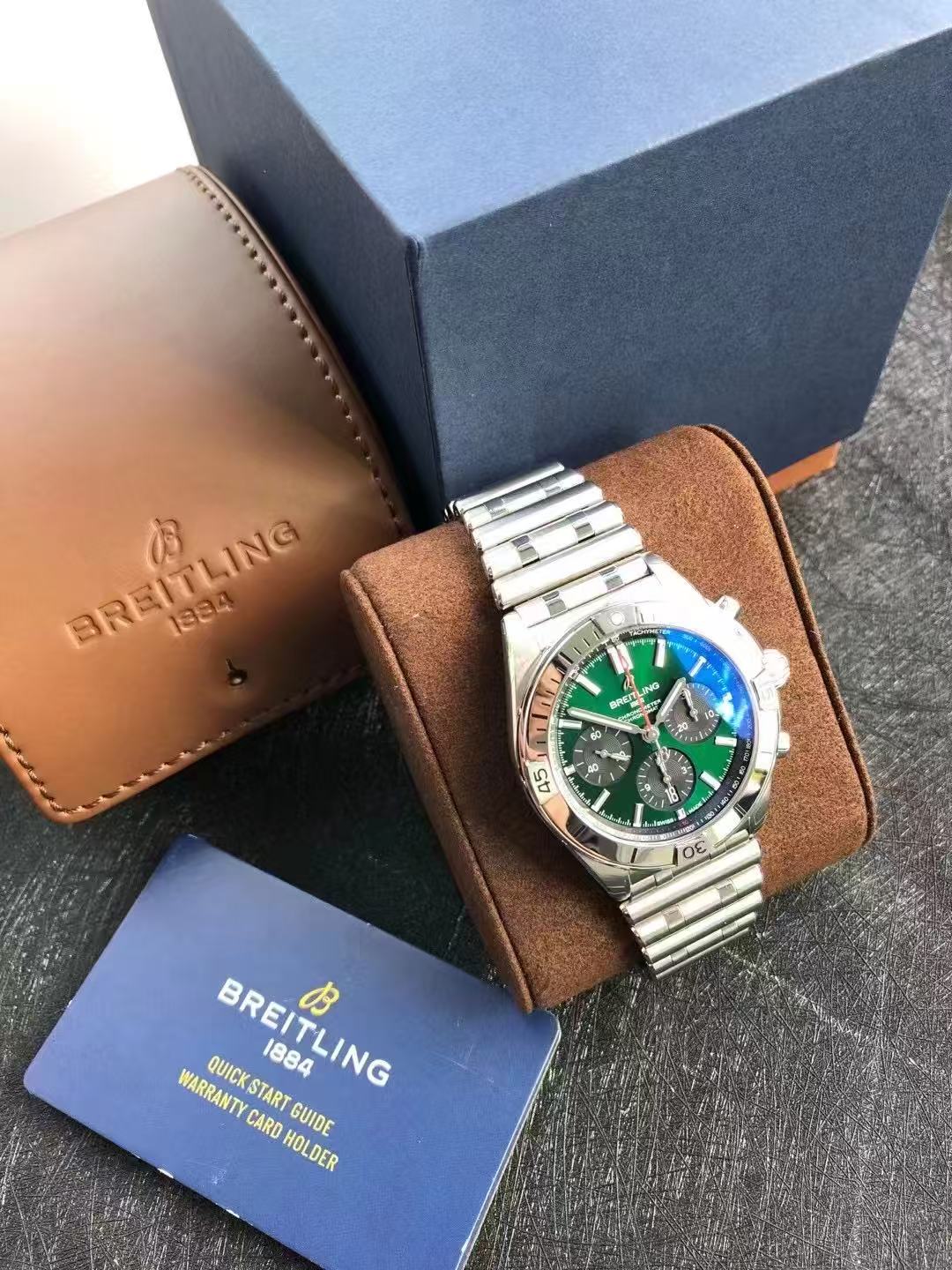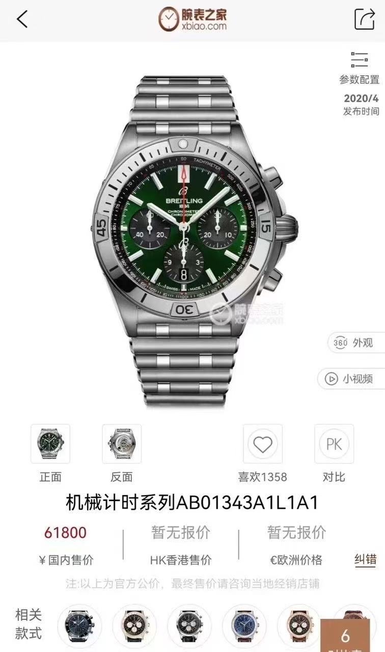 百年灵腕表 机械计时系列 AB01343A1L1A1~热门机械计时宾利,42mm宾利绿表盘三小盘计时码表功能,精钢旋转计时表圈~搭载背透自产当家B01机芯,自研子弹带~现货好价