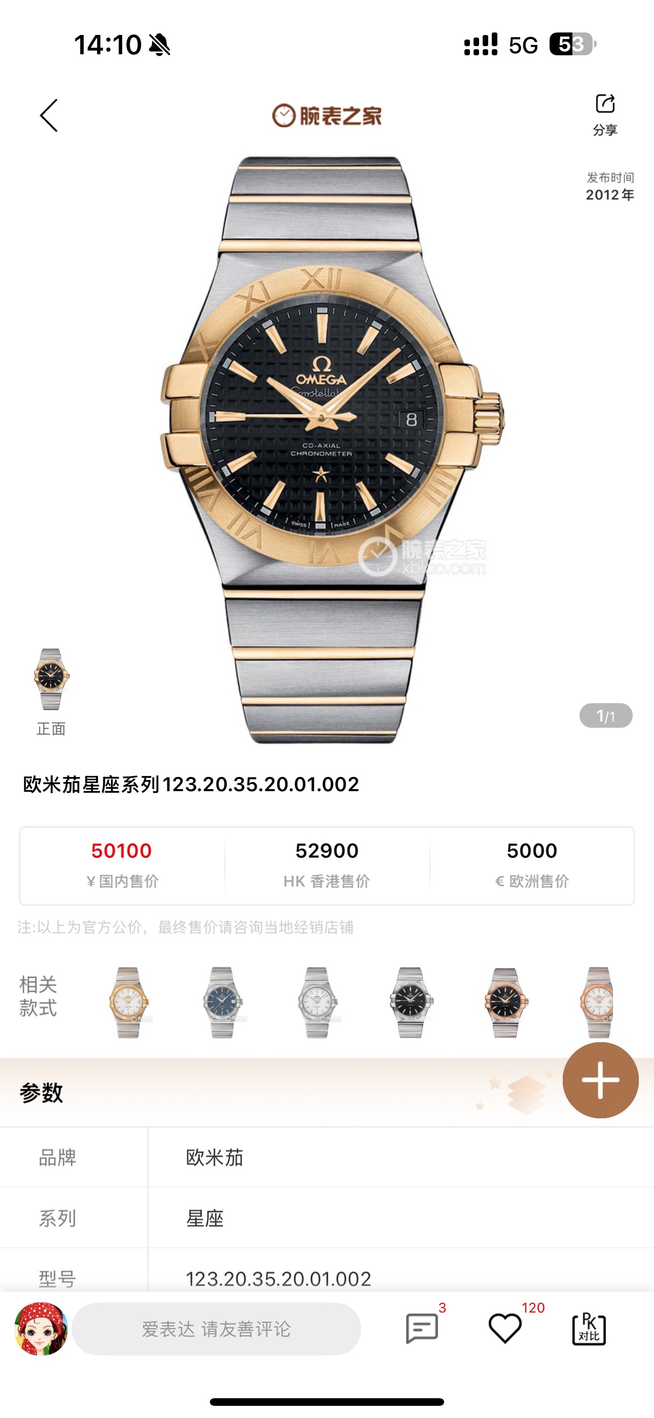 欧米茄/Omega 星座 123.20.35.20.01.002