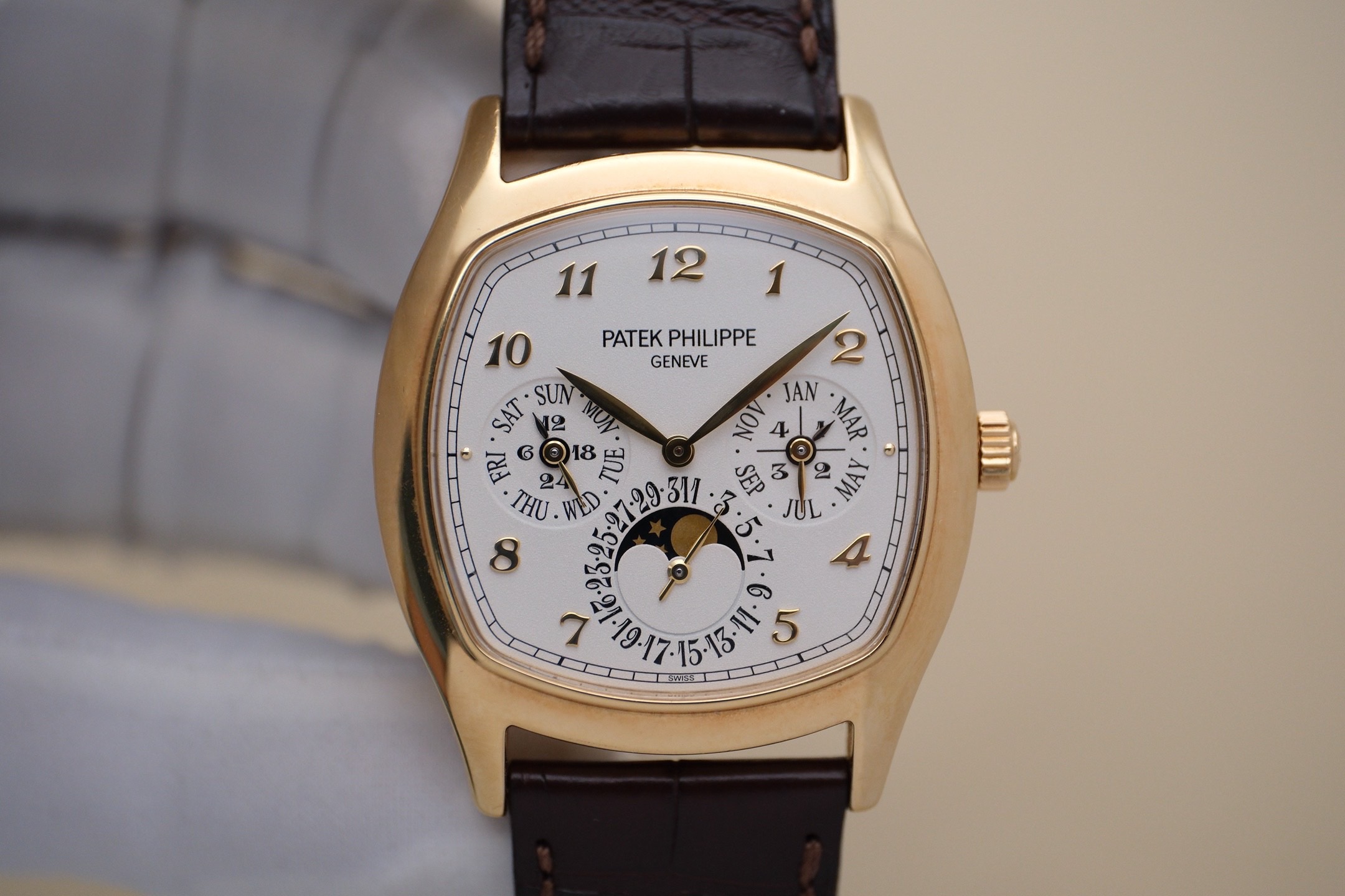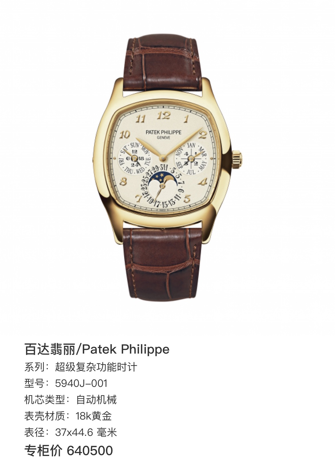 百达翡丽/Patek Philippe 超级复杂功能时计 5940J-001 自动机械,18k黄金,表经37x44.6 毫米,单表字头,专柜价640500~