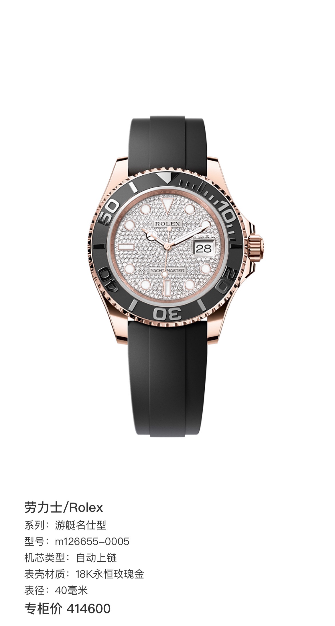 劳力士/Rolex 游艇名仕型 m126655-0005 自动上链,18K永恒玫瑰金,40毫米,2022年9月保卡,胶带规格D/E,专柜价414600
