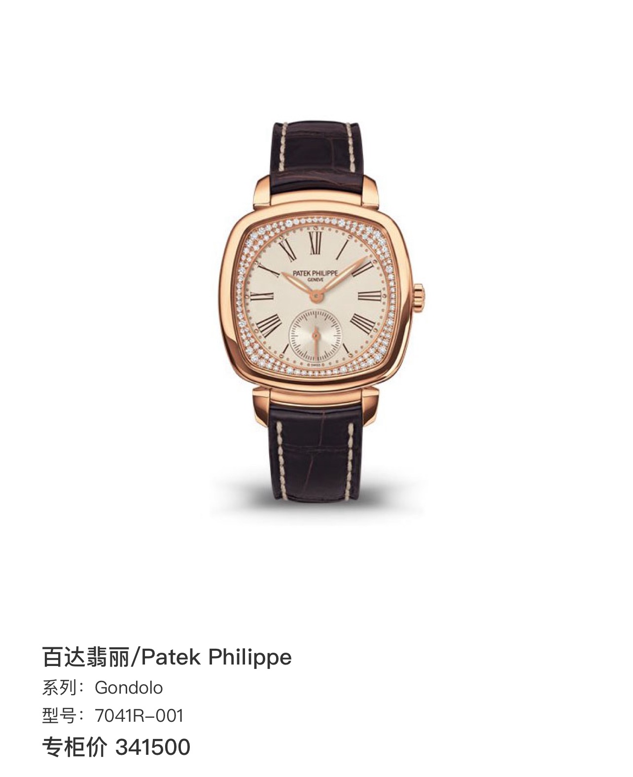 百达翡丽/Patek Philippe7041R-001 手动机械,18k玫瑰金原钻,30x33.8mm表径,2016年全套,专柜价341500