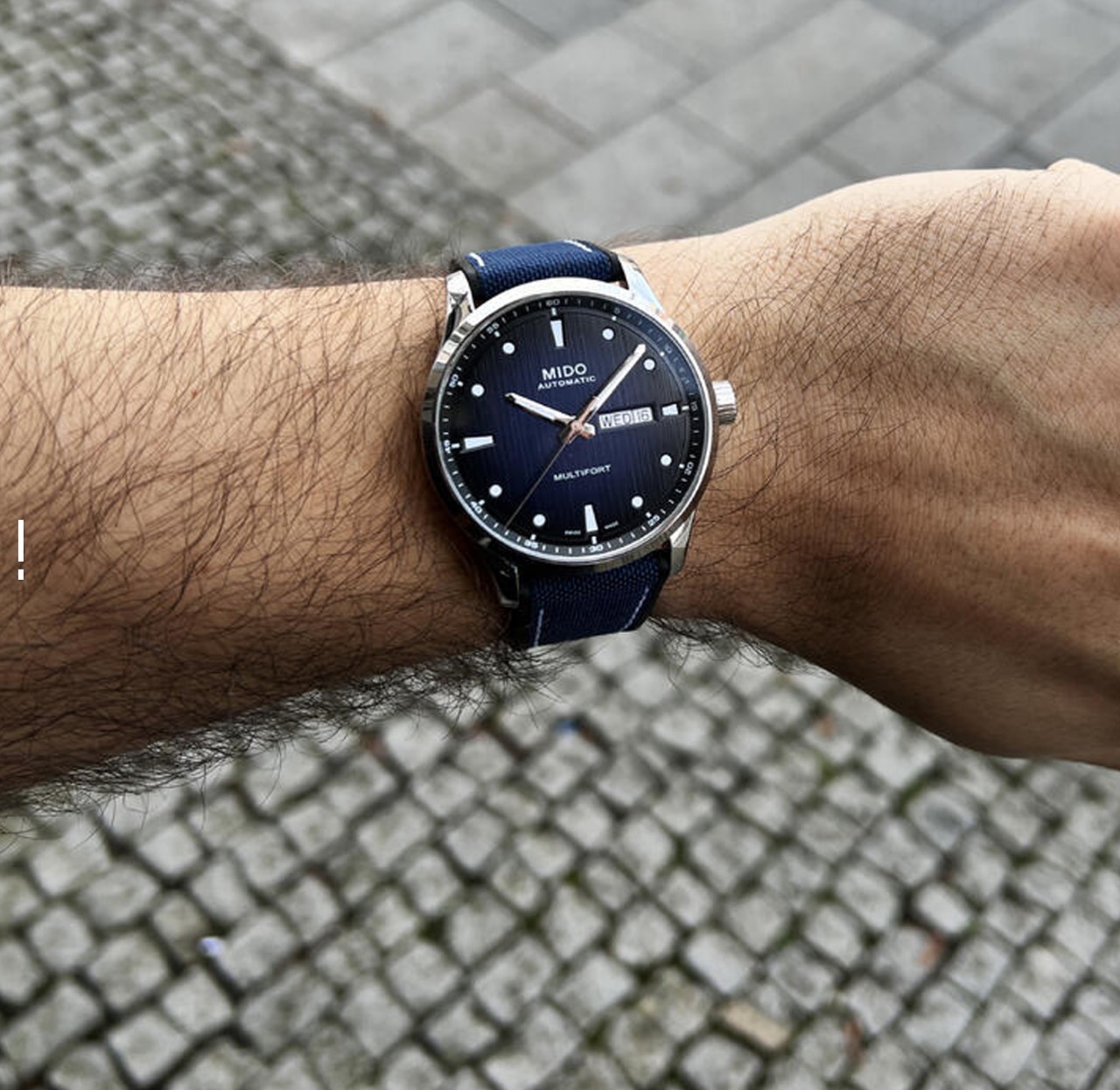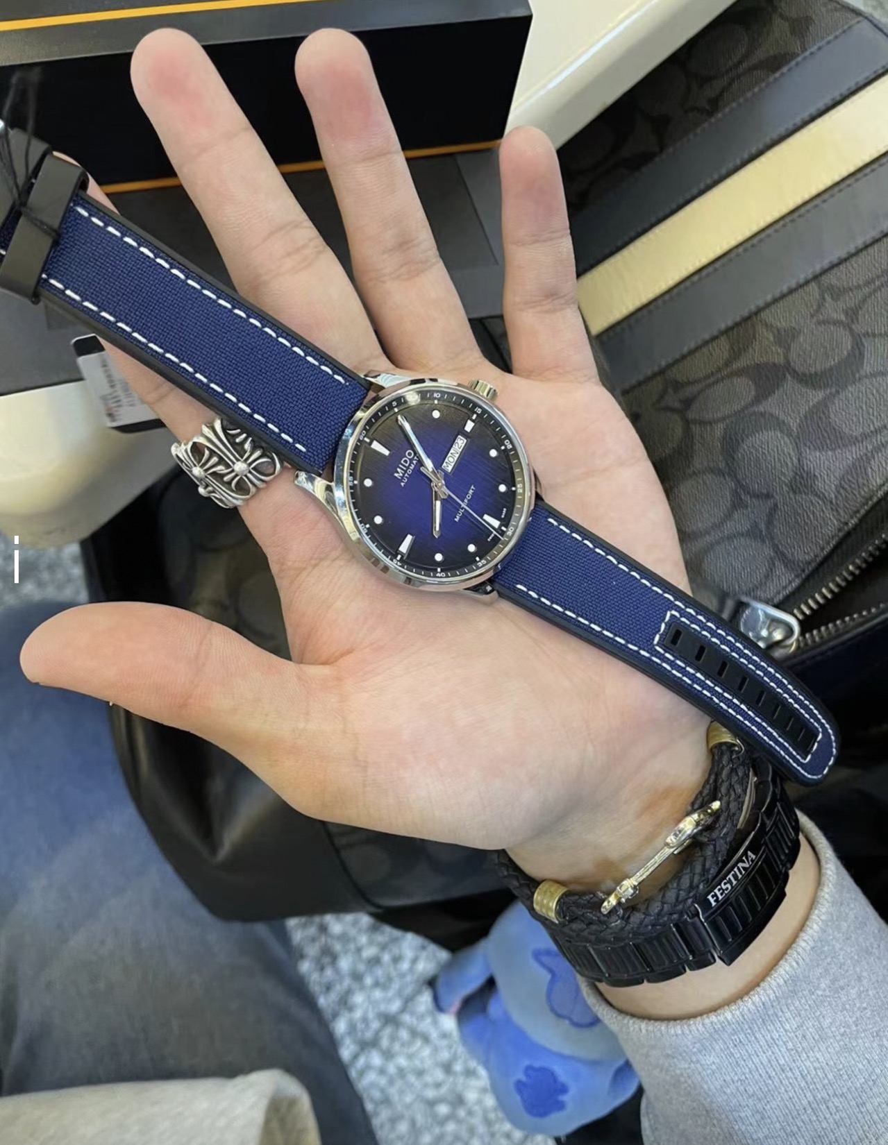 MIDO美度 舵手系列M038.430.17.041.00千禧腕表 自动机械机芯 100米防水 男表 瑞表 42mm 蓝色表盘 精钢精钢表壳 织物表带 专柜售价7100 全新全套全国联保近期保卡