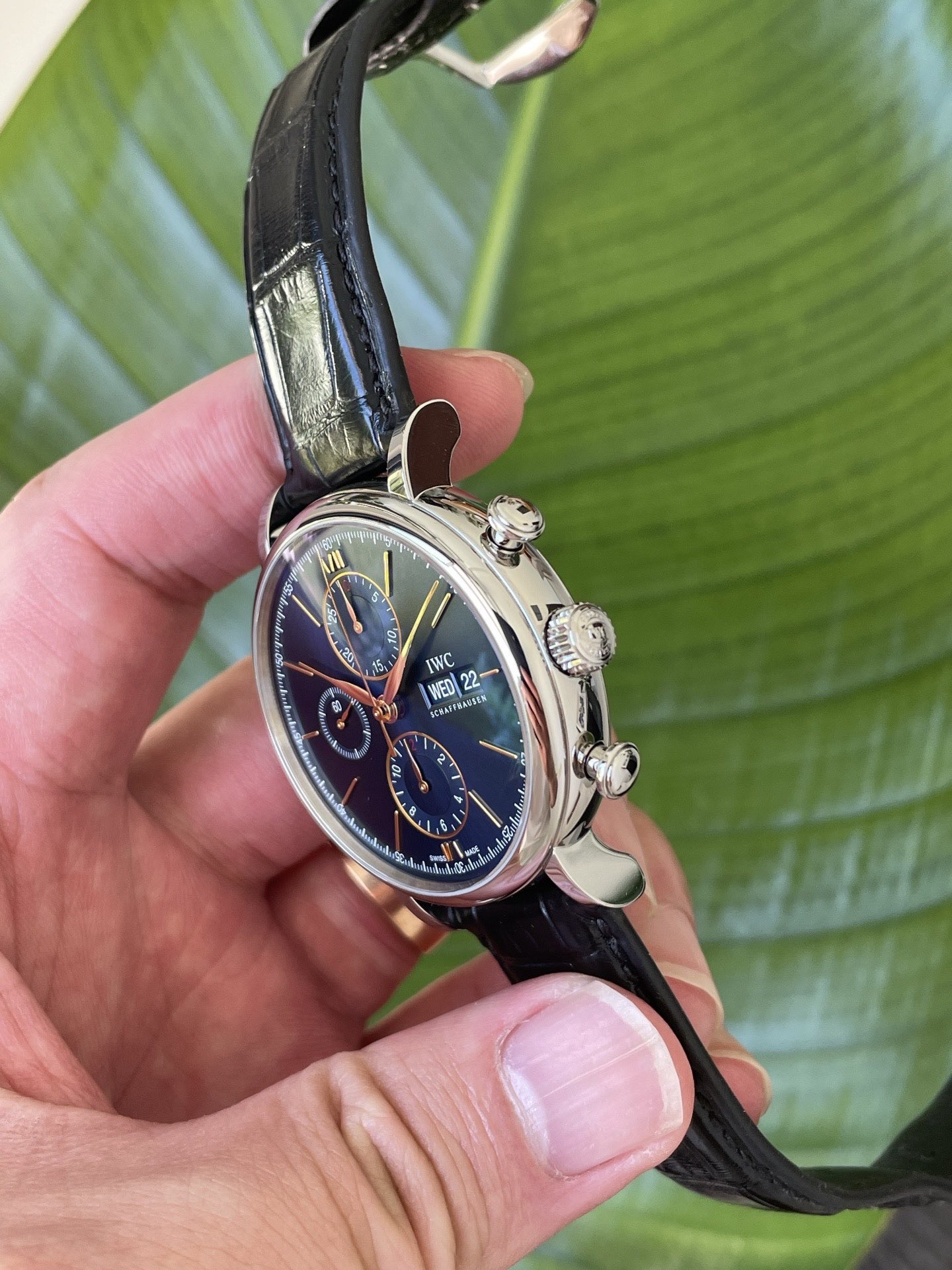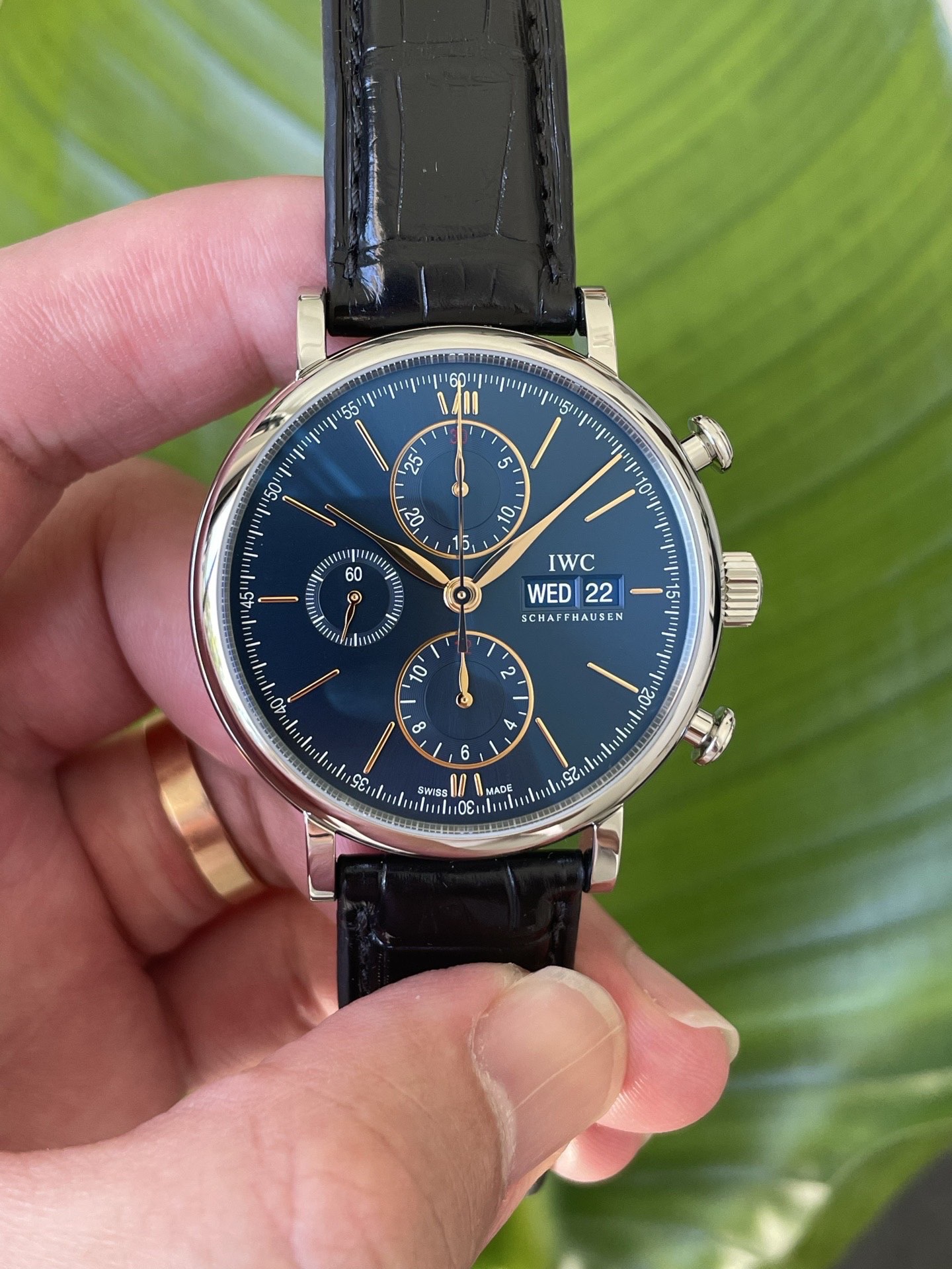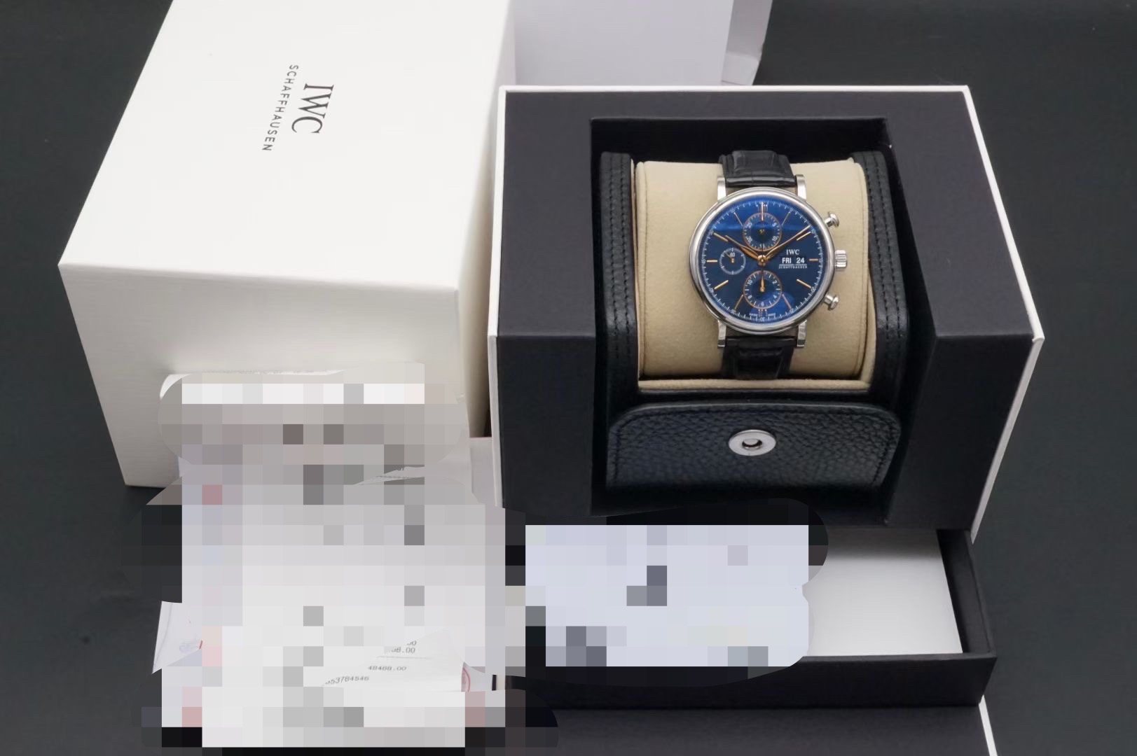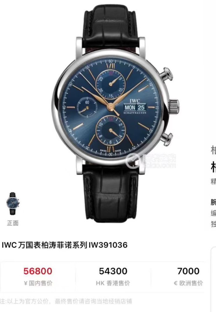 万国柏涛菲诺系列IW391036男士机械腕表,整表近新表径42原装皮带,新款的蓝面金针柏涛计时更显档次,原价56800