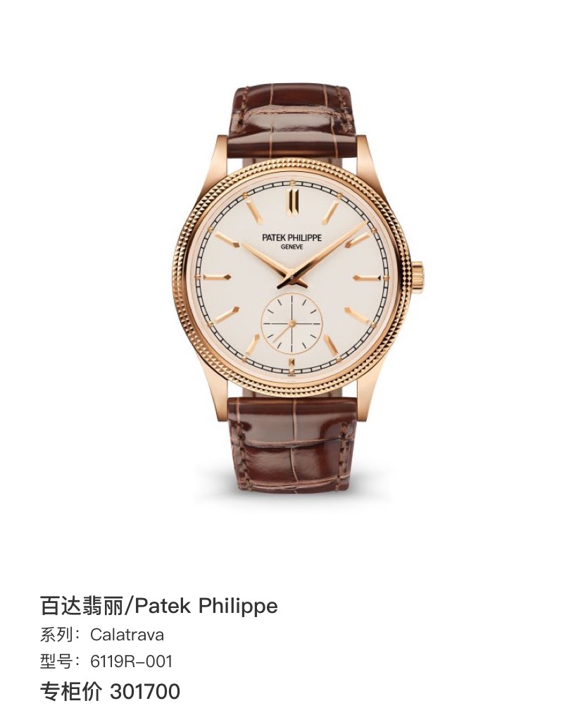 百达翡丽Calatrava 6119R-001 ,18k玫瑰金材质,手动上链,专柜价301700,