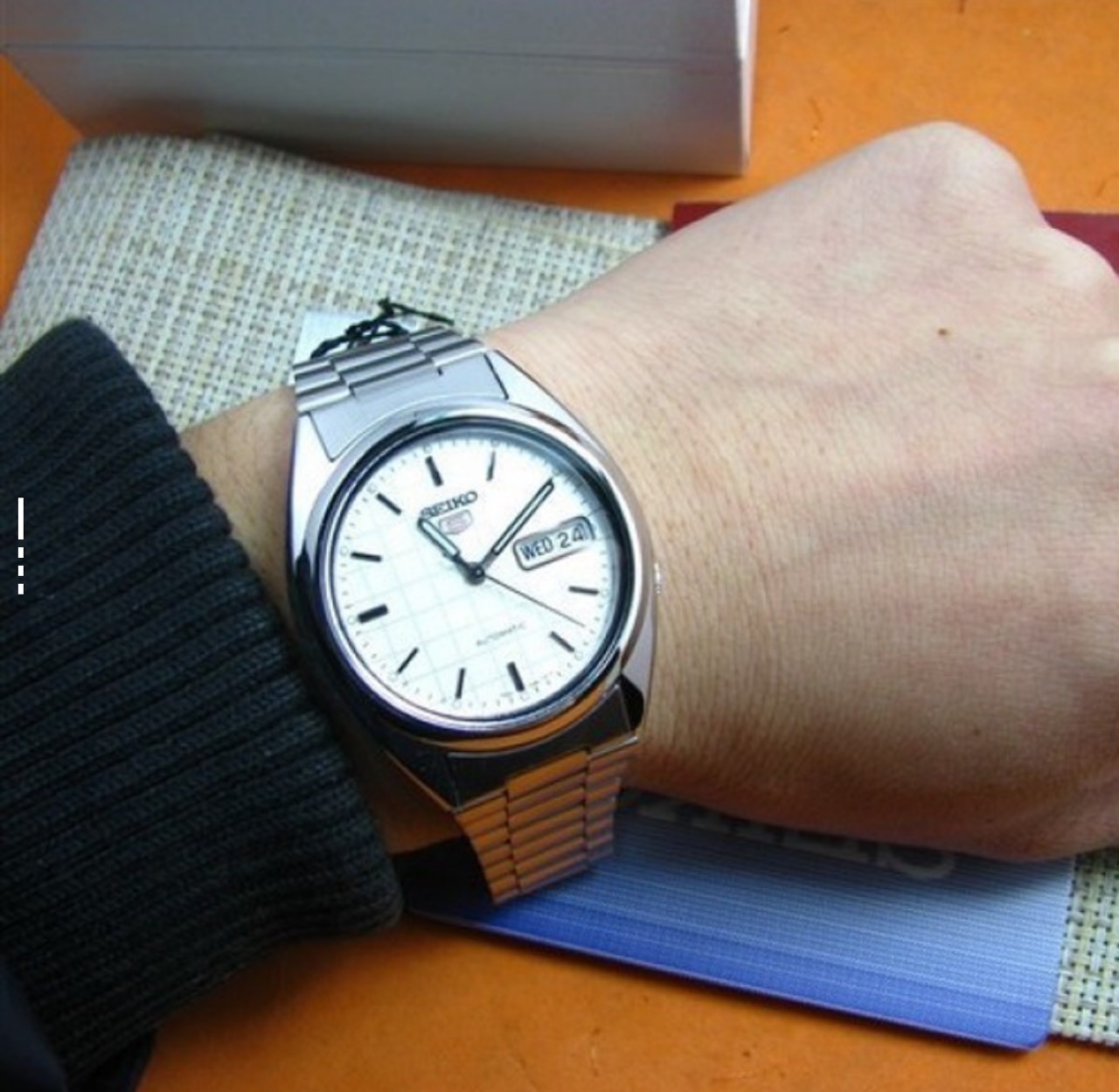 SEIKO精工 5系列 SNXF05K1自动机械机芯 防水 男女同款 腕表 38表径 白色表盘 SNXF05K1 专柜售价1900 全新全套全国联保近期保卡,预订