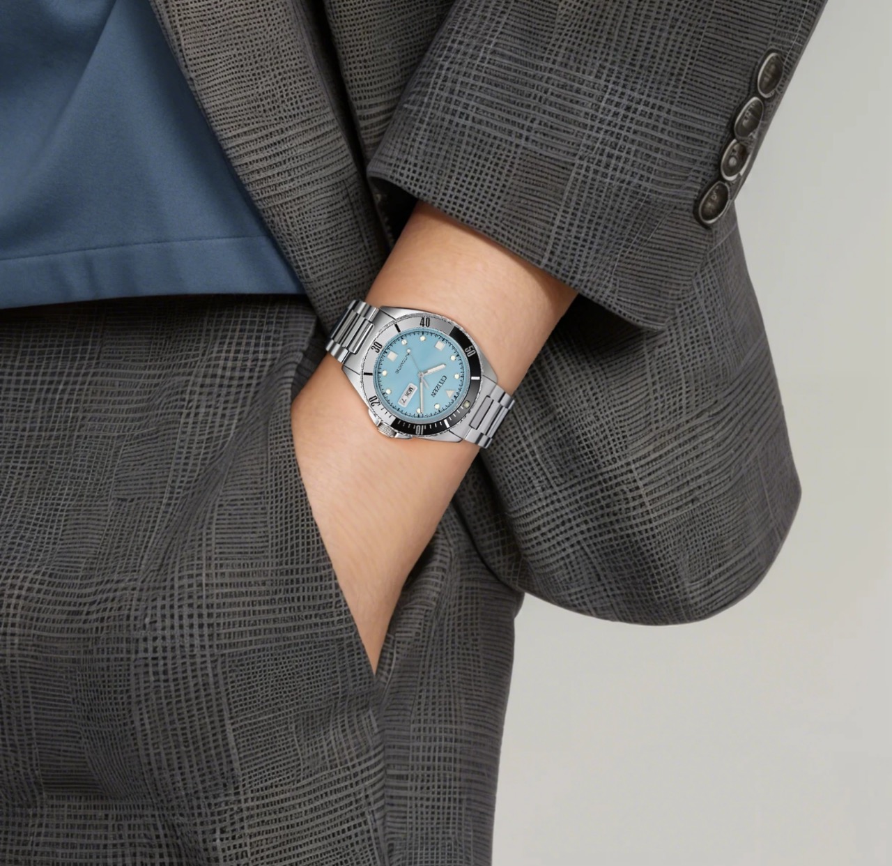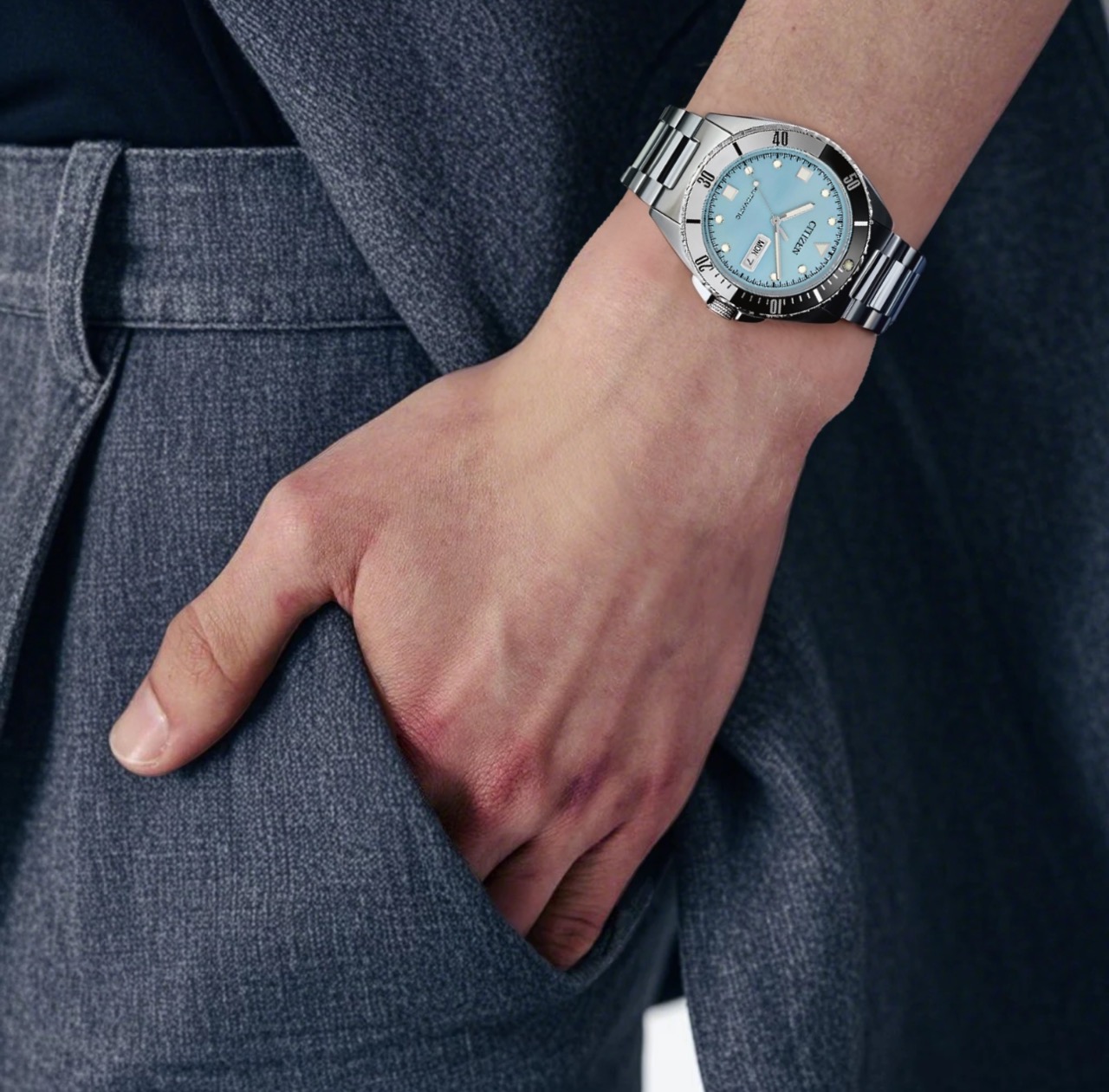 CITIZEN西铁城 NH7530-52L防水100米 自动机械机芯 不锈钢表带 日韩表 42mm 男表 蓝色表盘 全新全套全国联保近期保卡
