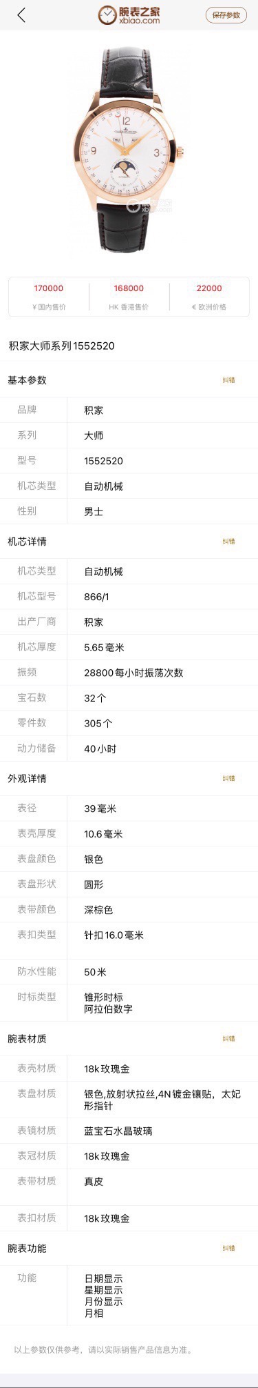 表径39mm 专柜价170000。