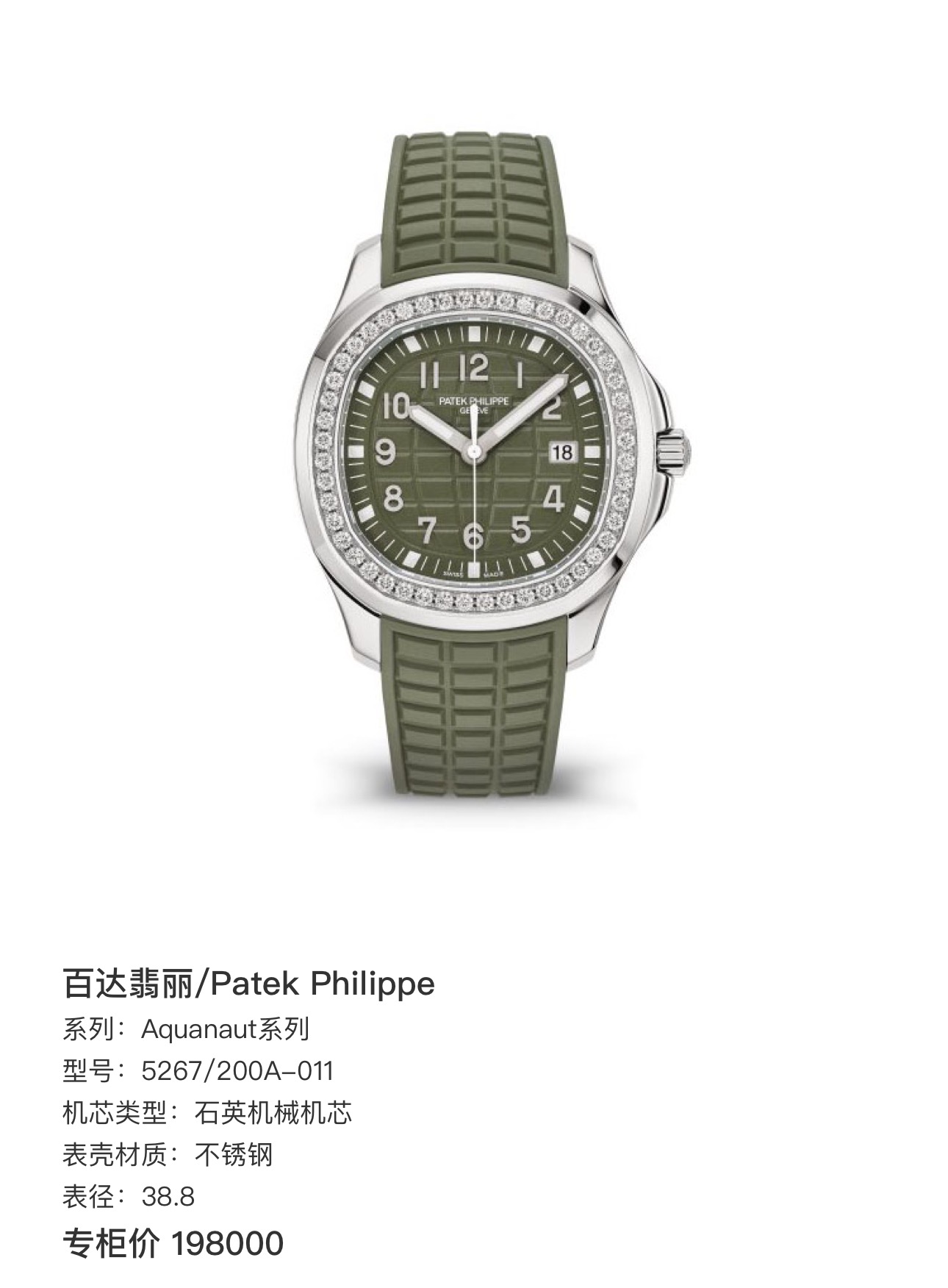 百达翡丽/Patek Philippe Aquanaut系列 5267/200A-011 石英机械机芯 不锈钢 38.8 专柜价198000