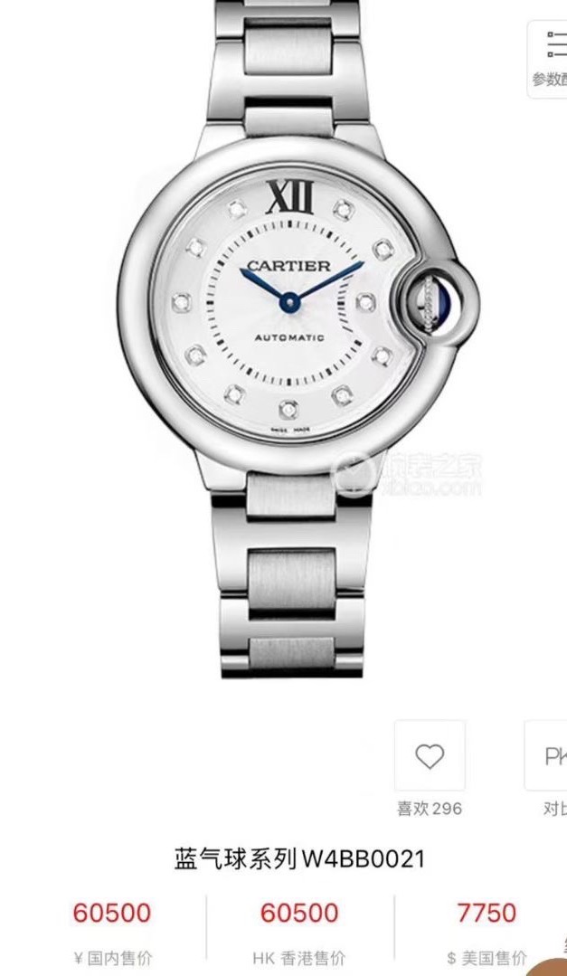 卡地亚蓝气球BALLON BLANCW4BB0021机械女性